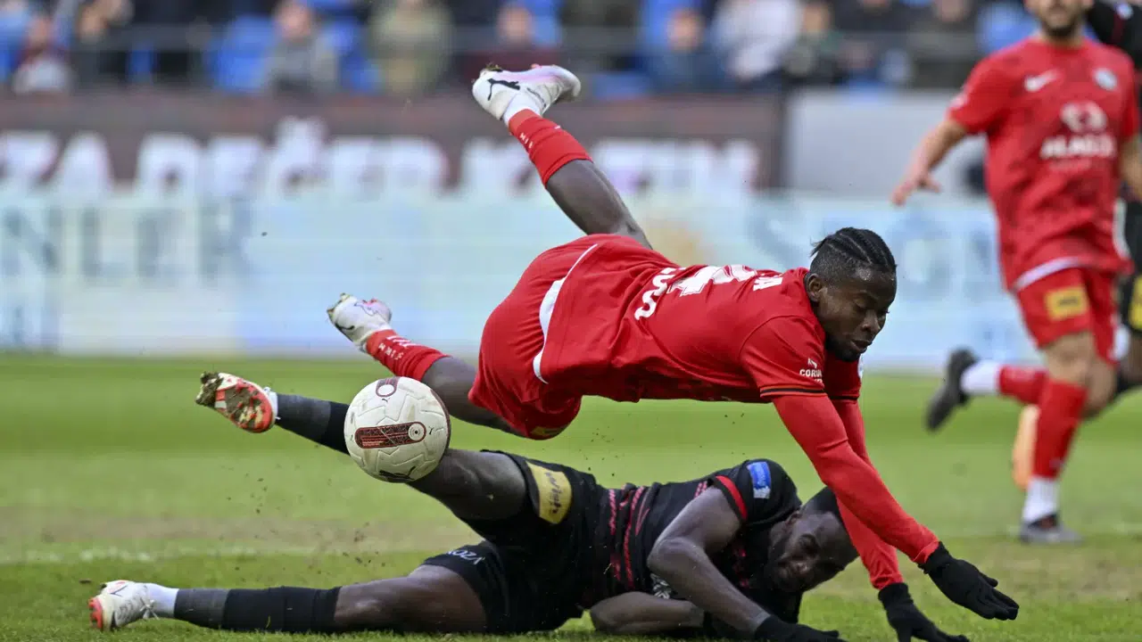Play-Off için kritik bir önem taşıyan maça iyi başlayan taraf temsilcimiz oldu. İlk ciddi atağı 10’uncu dakikada Ferhat’ın şutu ile bulan Kırmızı Şimşekler, 19’uncu dakikada ise kalesinde ilk yarının en tehlikeli anını yaşadı. Kayedo’nun kaleci ile baş başa kaldığı pozisyonda top direkten dönerken, bu atak ev sahihi ekibin ilk yarıdaki tek ciddi atağı oldu.