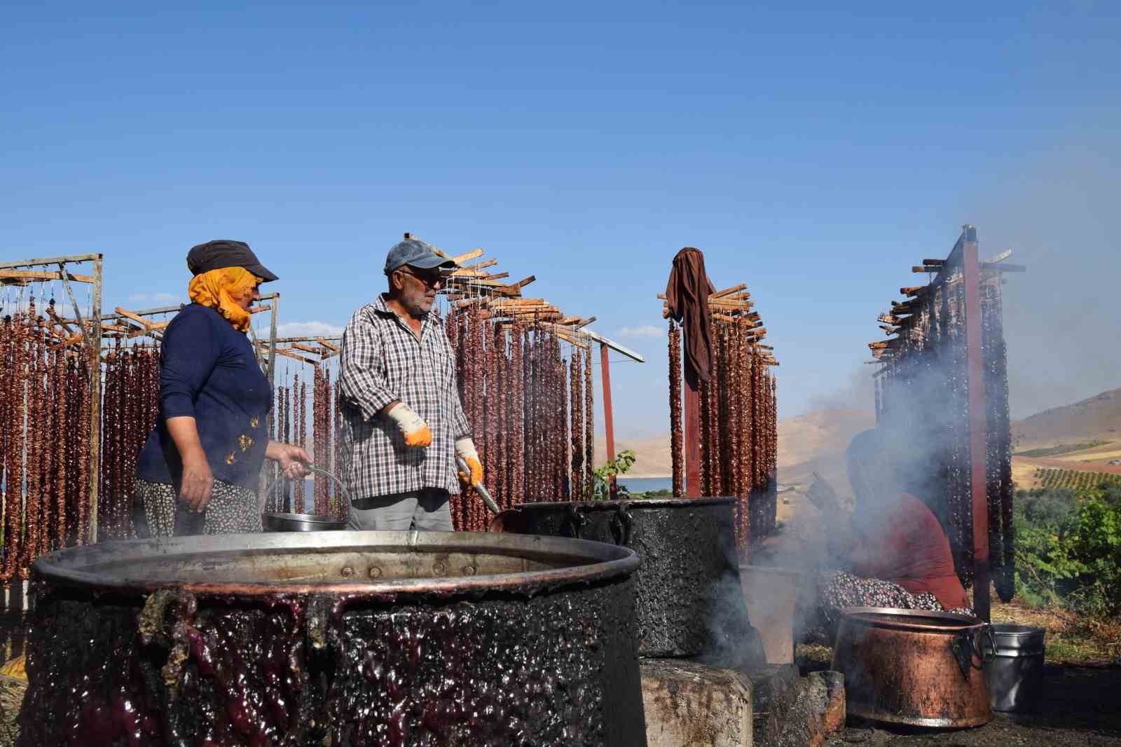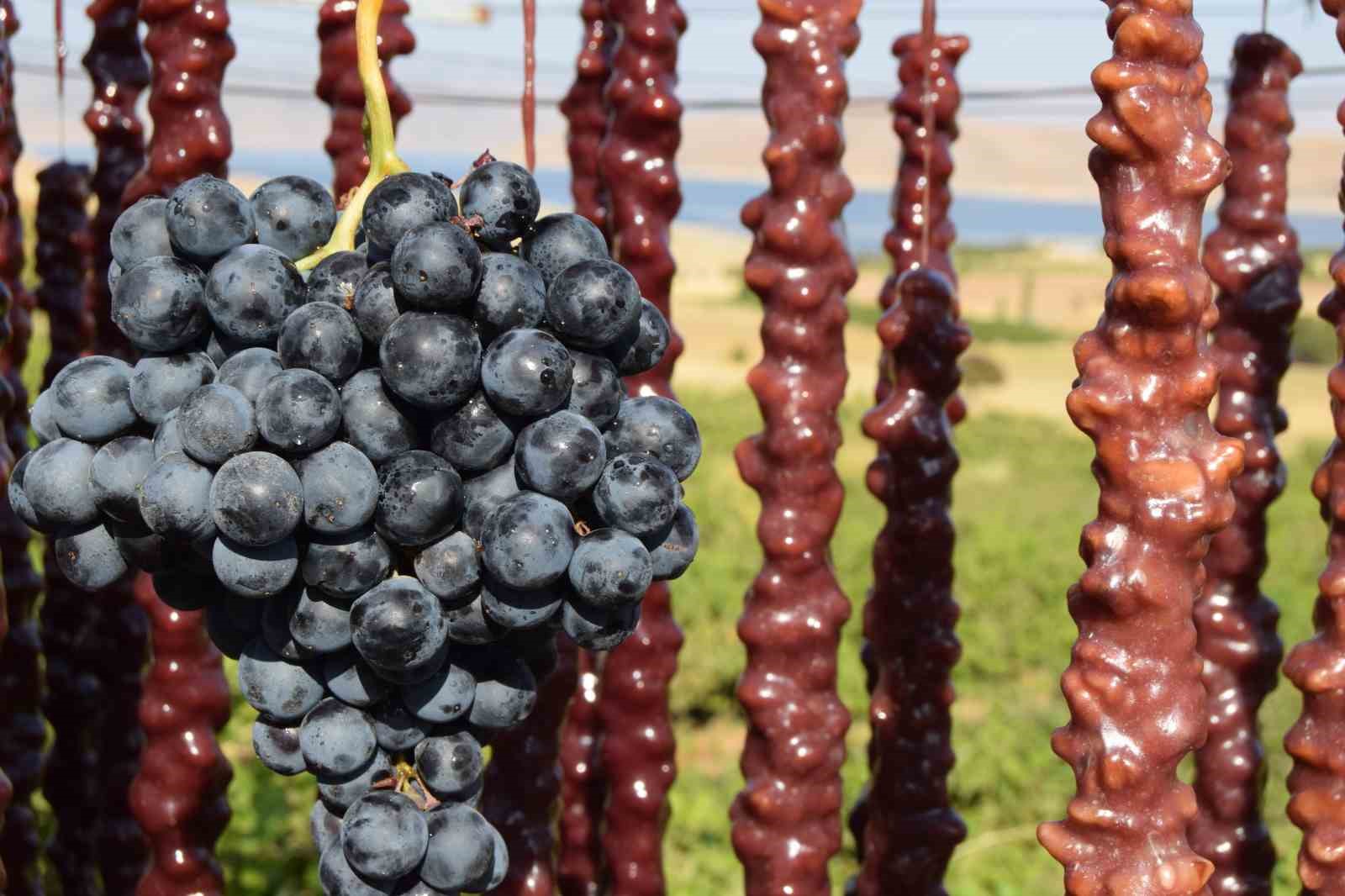 Elazığ’da bağ bozumu döneminde köylerde geleneksel yöntemlerle yapılan ve kış mevsiminde çerez olarak tüketilen orcik (cevizli sucuk), yoğun talep görüyor.