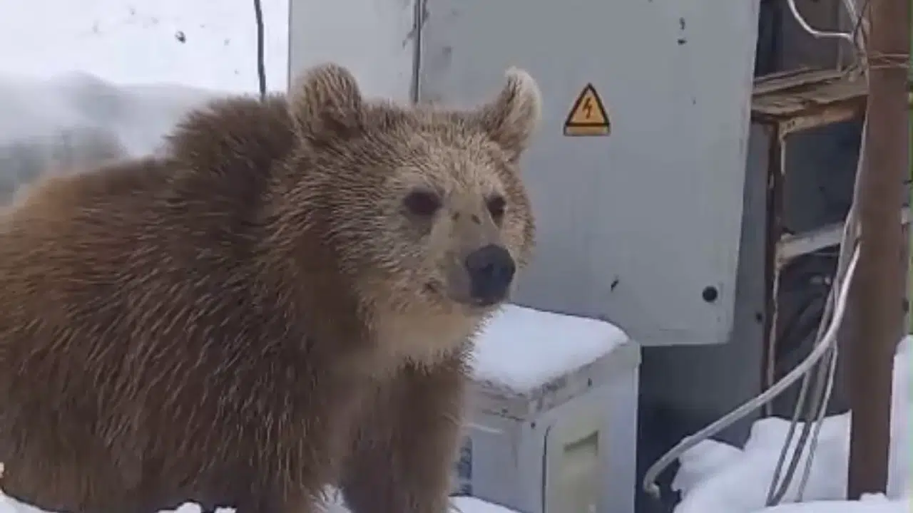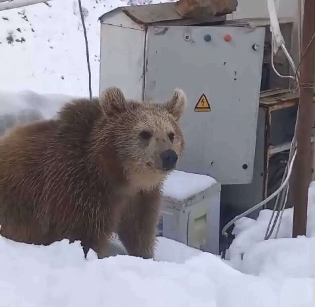 Yüksekova’ya 56 kilometre uzaklıkta bulunan Dağlıca köyündeki yol şantiye alanı, ayıların uğrak mekanı oldu. Kış uykusuna yatmayarak şantiyeye inen aç ayı, burada bulunan çöpleri karıştırarak karnını doyurmaya çalıştı.