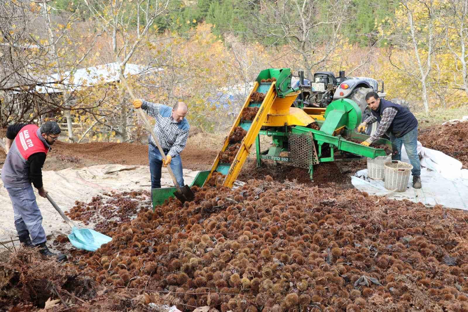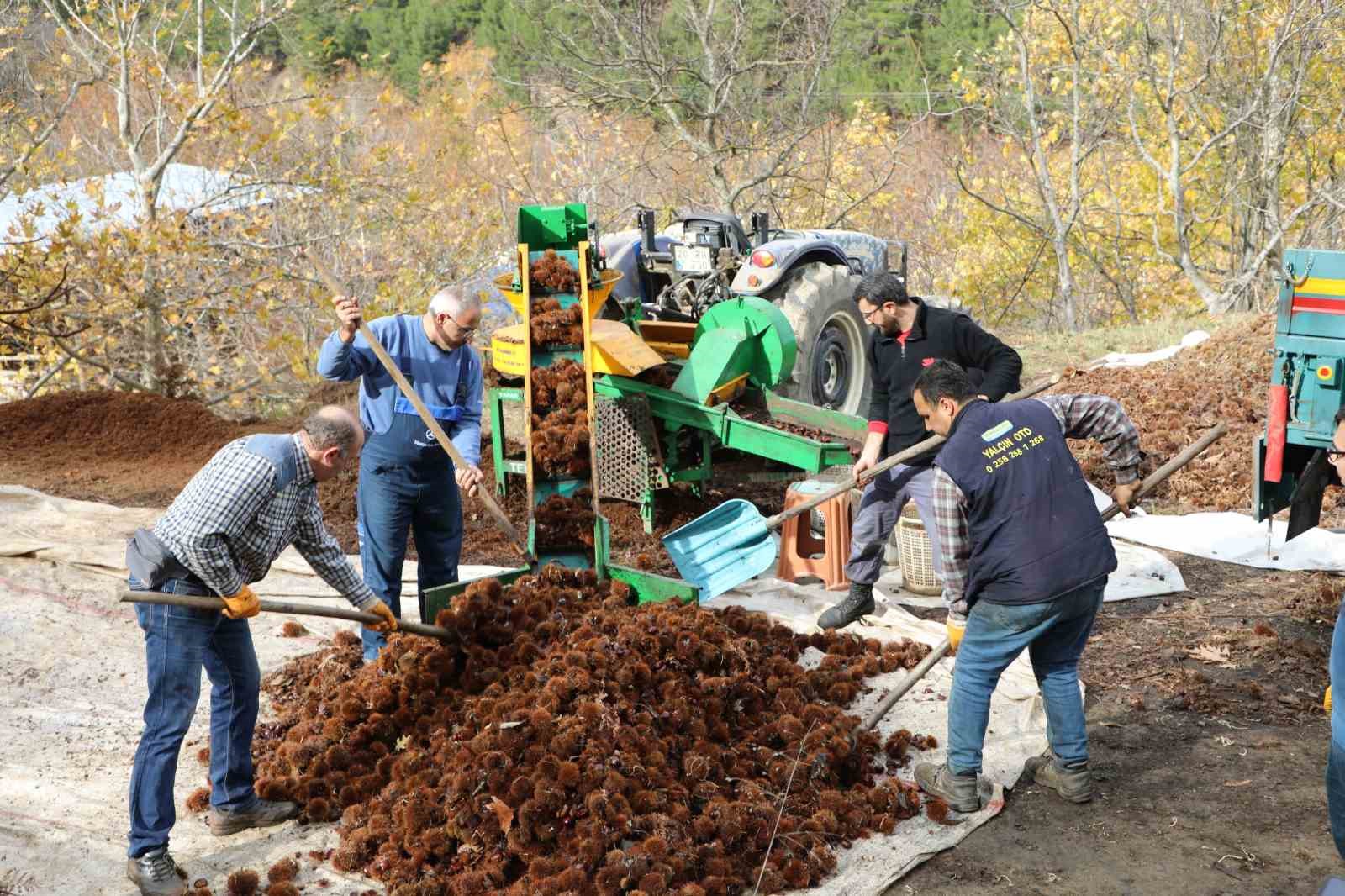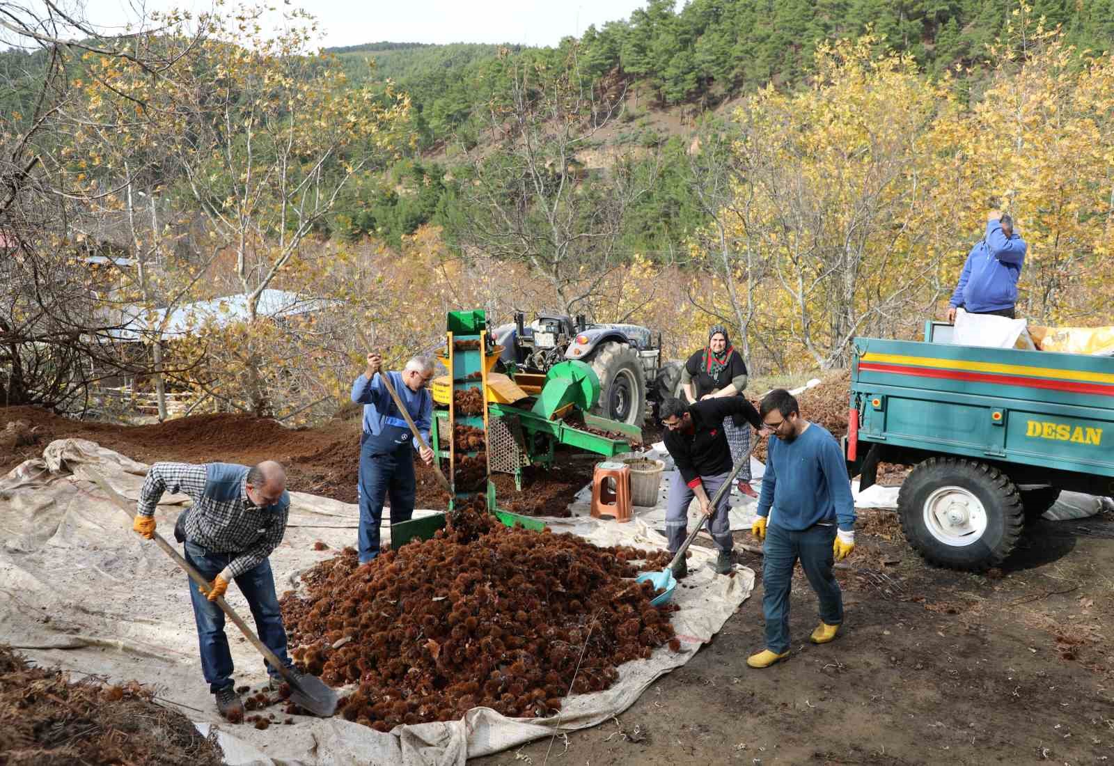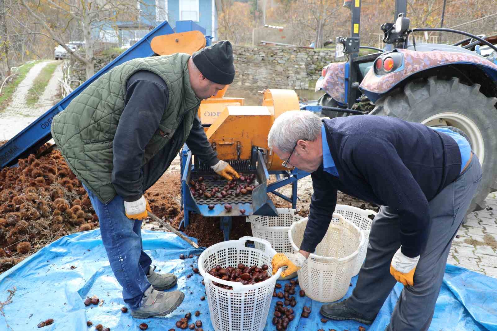 Ağaçlarda meydana gelen hastalık nedeniyle verimin geçen yıla oranla düştüğünü ifaden eden üretici Esen Yenilmez ise, “Kestanemizi kuyularda beklettikten sonra bugün çıkartıyoruz. Dikenlerinden ayırıyoruz, hazır hale getiriyoruz. Şu anda tam kıvamında. Kolay soyulması ve lezzetiyle diğer bölgelerden farklıdır. Alandız ve Kurudere mahallelerinde yetişen kestaneler cins olarak şekerlidir. Şu anda patoz makinesinden geçirdik. İhracata gidiyor. İç pazarda Ankara, İstanbul ve İzmir gibi kentlerden alıcılarımız buraya geliyor. Bizden götürüyor. Yalnız bir sıkıntımız var. Ağaçlarımızda kurumalar mevcut. Bunun da inşallah önüne geçeceğiz. Bu yıl verim geçen seneye oranla yarı yarıya düştü” şeklinde konuştu.