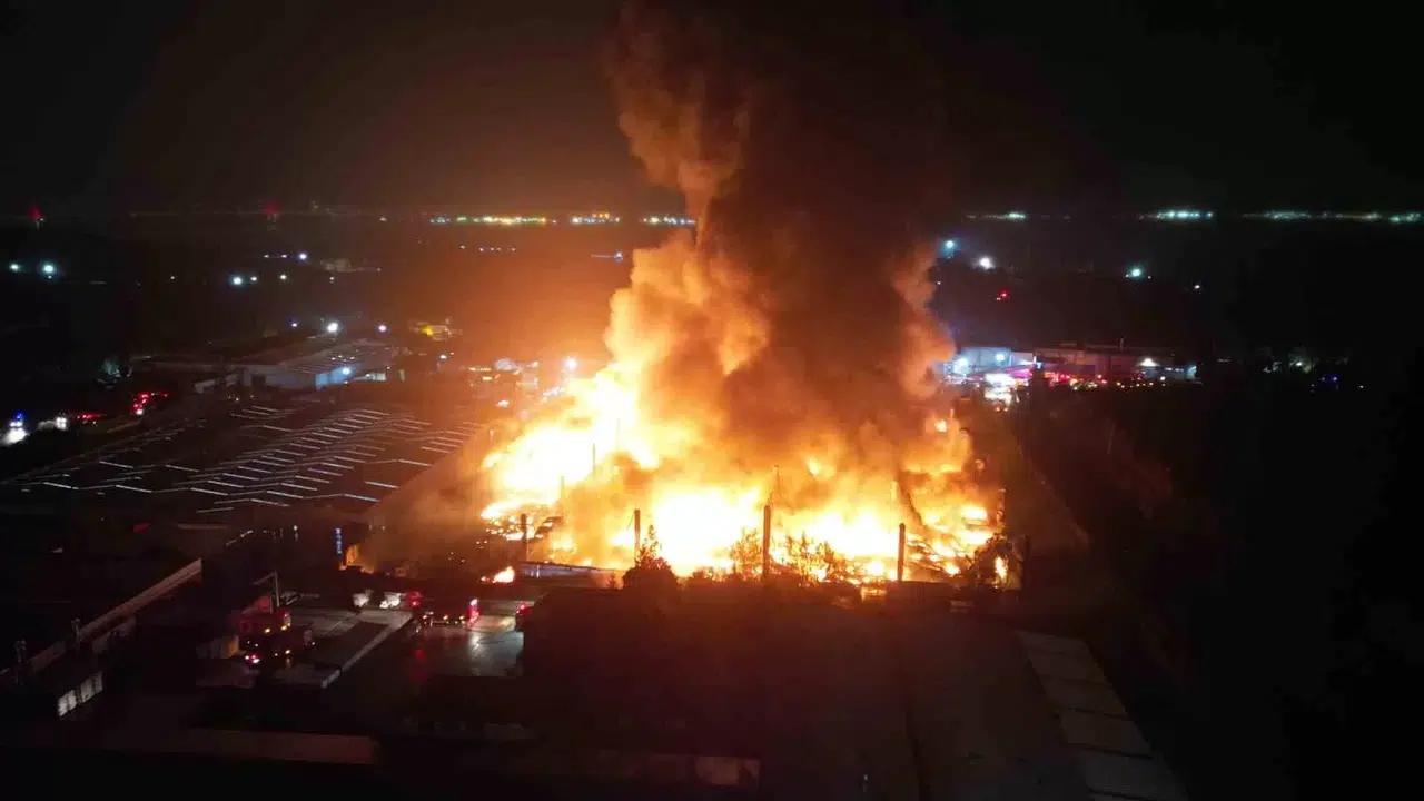 Kocaeli’nin Gebze ilçesinde lojistik fabrikasında çıkan yangını söndürme çalışmaları 3 saat boyunca devam ediyor. Alevler diğer fabrikalara da sıçrarken, yangının büyüklüğü havadan görüntülendi.