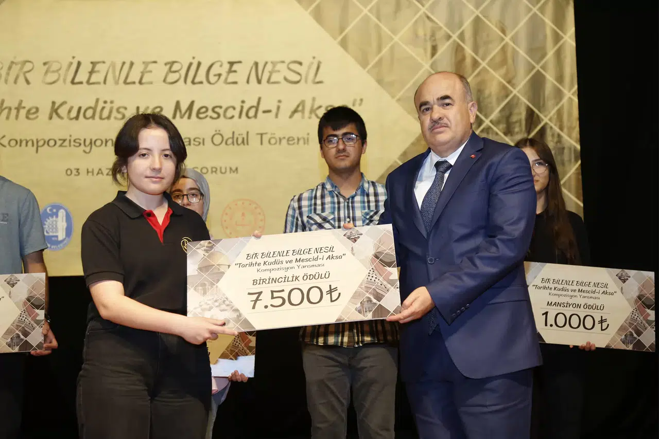 Çorum Valiliği himayelerinde Çorum Belediyesi, İl Milli Eğitim Müdürlüğü, Eğitim-Bir-Sen ve Genç Memur-Sen tarafından düzenlenen "Bir Bilenle Bilge Nesil 'Tarihte Kudüs ve Mescid-i Aksa' Kompozisyon Yarışması" ödül töreni gerçekleştirildi. Vali Doç. Dr. Zülkif Dağlı ve protokol üyelerinin katılımıyla gerçekleşen törende, yarışmada dereceye giren öğrencilere ödülleri takdim edildi.