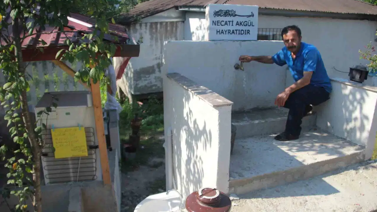 Yaklaşık 40 yıl boyunca İstanbul’da yaşadıktan sonra 2 yıl önce Altınordu ilçesi Kökenli Mahallesi’ndeki baba ocağına taşınan ve yalnız yaşayan Engin Gün (63), çevresindeki fındık bahçelerinde ve mahallede içme suyu olmadığından, ilk olarak evinin yanına bir çeşme yaptırdı. O çeşmeyi yaptırdıktan sonra insanların özellikle yaz aylarında soğuk su içmesi için çeşmenin hemen yanına bir buzdolabı koyan Gün, dolabın içerisini ayrıca ekmek, karpuz, soğuk su, kahvaltılık gibi ürünler ile doldurdu, bir de semaver ve çay bıraktı. Buzdolabına astığı "Dolapta soğuk su, kahvaltı, kamelyada çay var, hayrat kullanabilirsiniz" yazısını gören, acıkan ve susayan işçiler ile vatandaşlar, buradaki hayrattan ücretsiz bir şekilde yararlanıyor, karınlarını doyurup soğuk sularını ve çaylarını içebiliyor.
