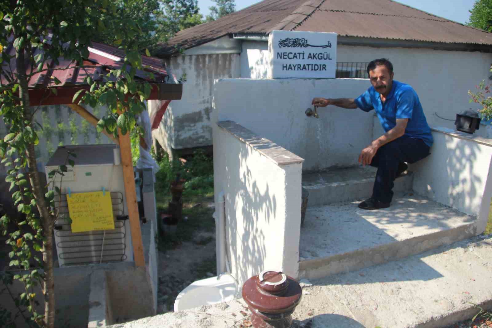 Ordu’da evindeki buzdolabını bahçeye koyan vatandaş, yoldan geçenlere ücretsiz olarak su, çay ve gıda ikramında bulunuyor.