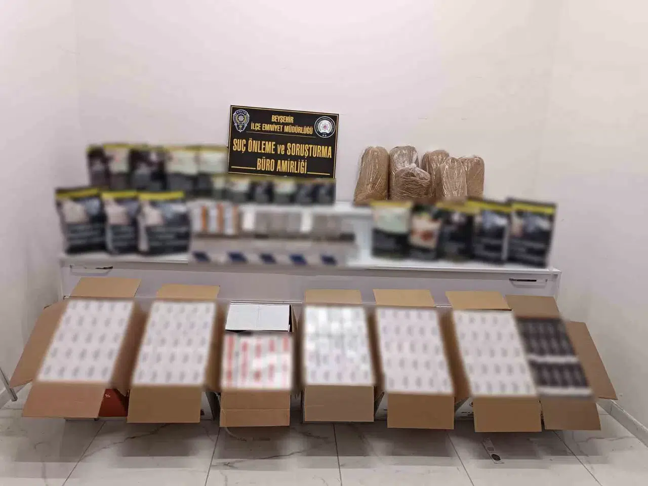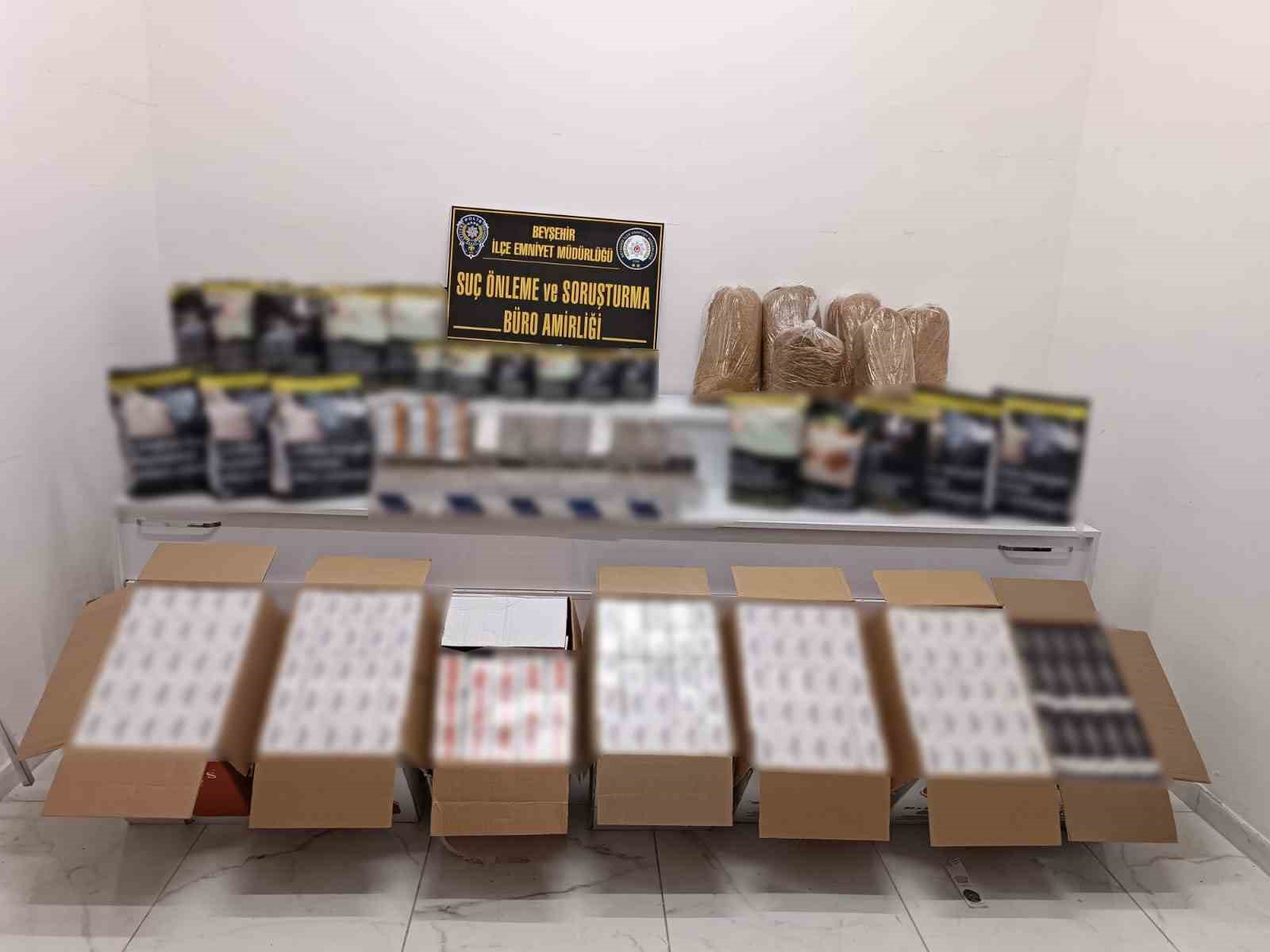 Edinilen bilgiye göre, Beyşehir İlçe Emniyet Müdürlüğü ekipleri, bir araç ile ilçeye kaçak tütün ve tütün mamulleri getirileceği bilgisi üzerine çalışma başlattı. Plakası tespit edilen araç ilçe merkezinde durdurulduktan sonra incele yapılmak üzere emniyet müdürlüğüne götürüldü. Yapılan detaylı aramada, araç içerisinde, 68 bin 400 adet bandrolsüz makaron, 30,5 kilo kıyılmış tütün, 6 kilo 950 gram paketli bandrolsüz tütün, 11 bin 700 adet sarılmış dolum sigara ile 21 adet sökülmüş vaziyette bandrol ele geçirildi. Ele geçirilen malzemelere el konulurken, araç sürücüsü İ.T. gözaltına alındı.
