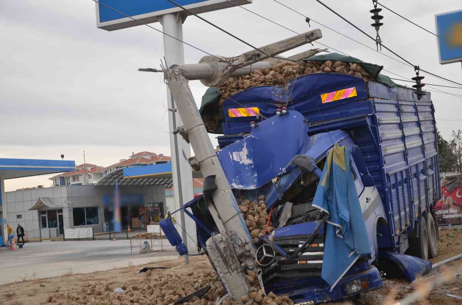Kaza, Ereğli ilçesi Türkmen Kavşağı yakınında meydana geldi. Edinilen bilgiye göre, D.E.’nin kullandığı pancar yüklü kamyon ile Z.G. idaresindeki 42 YZ 254 plakalı kamyonet çarpıştı. Çarpışmanın şiddetiyle kontrolden çıkan pancar yüklü kamyon bir akaryakıt istasyonunun girişinde bulunan kaldırımda çıkarak beton direğe çarptı. Beton direği ortadan ikiye bölen kamyondaki pancarlar çevreye saçıldı. Kazaya karışan kamyonet ise hurdaya döndü. Kazada kamyonet sürücüsü ve yanında bulunan yolcu yaralandı. İhbar üzerine itfaiye, ambulans ve polis ekipleri sevk edildi. Kamyonette sıkışan yaralılar, itfaiye ekiplerinin müdahalesiyle sıkıştığı yerden çıkartıldı. Sağlık görevlilerinin müdahalesinin ardından yaralılar Ereğli Devlet Hastanesine kaldırılarak tedavi altına alındı.