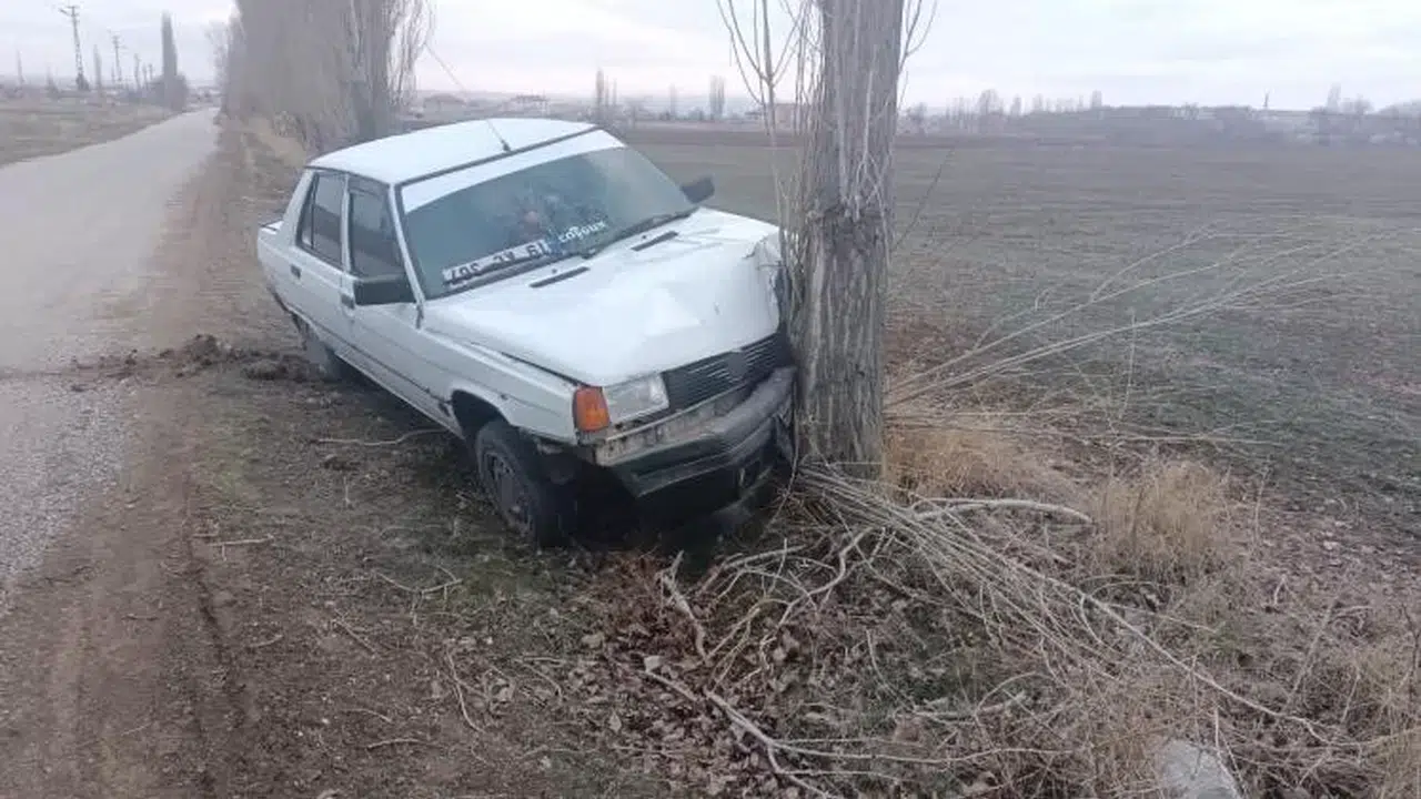 Çorum’un Alaca ilçesinde, ilçeden köye seyir halinde olan araç aniden yola çıkan köpeğe çarpmamak için manevra yapınca yol kenarındaki ağaca çarptı.