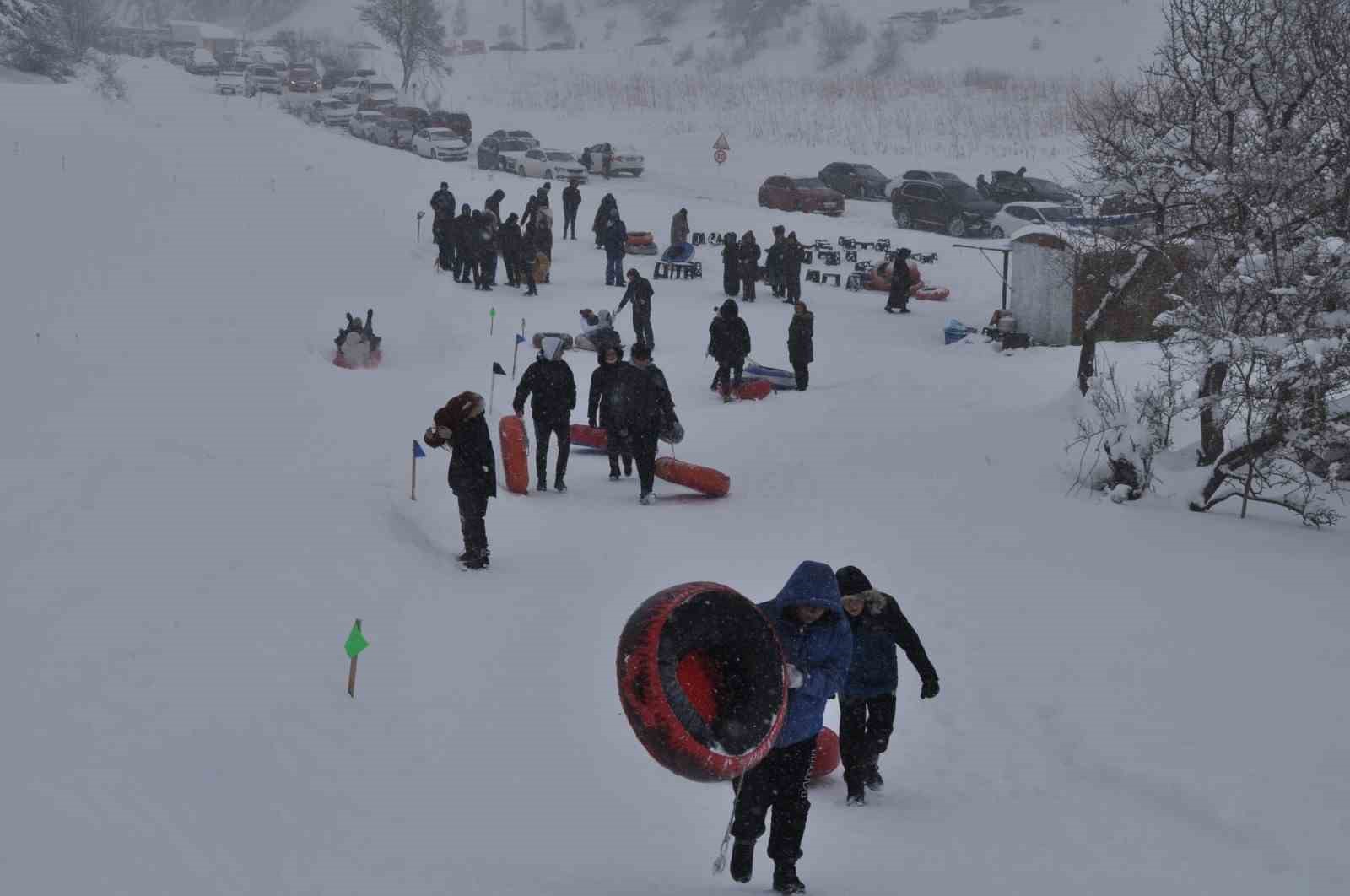 Günübirlik tatil için İstanbul’dan gelen bir grup arkadaş, kayak yapmanın eğlenceli olduğunu ifade etti.