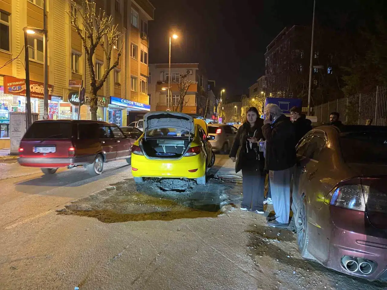 Kaza, Küçükçekmece Gültepe Mahallesi Bağlar Caddesi’nde meydana geldi. İstanbul Büyükşehir Belediyesine bağlı İstanbul Su ve Kanalizasyon İdaresi (İSKİ) ekipleri yolda çalışma yapıp herhangi bir önlem almadan etrafı açık bir şekilde bıraktı. İçinde yolcu bulunan 34 TDU 46 plakalı bir ticari taksi sürücüsü bozuk yoldan geçtiği anda kaza meydana geldi. Taksinin 2 hava yastığı açılırken, şans eseri bir yaralanma yaşanmadı.