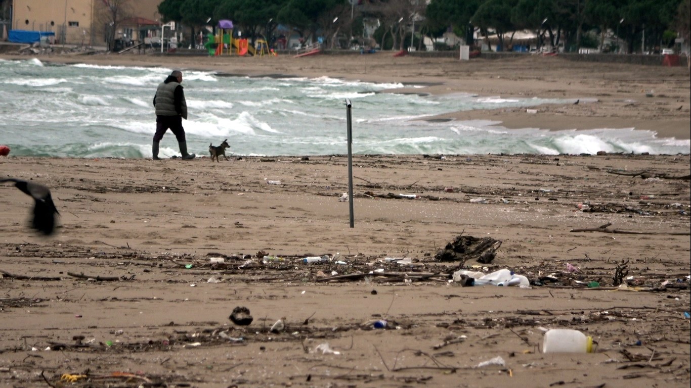 Kumsalda, deniz manzaralı bir çöplük görüntüsü oluşturan atıkların arasında serum şişesi, şırınga gibi tıbbi atıklar da dikkat çekti. Ayrıca şiddetli dalgalar nedeniyle kumsalda bulunan sundurma gibi küçük yapıların da hasar gördüğü öğrenildi.