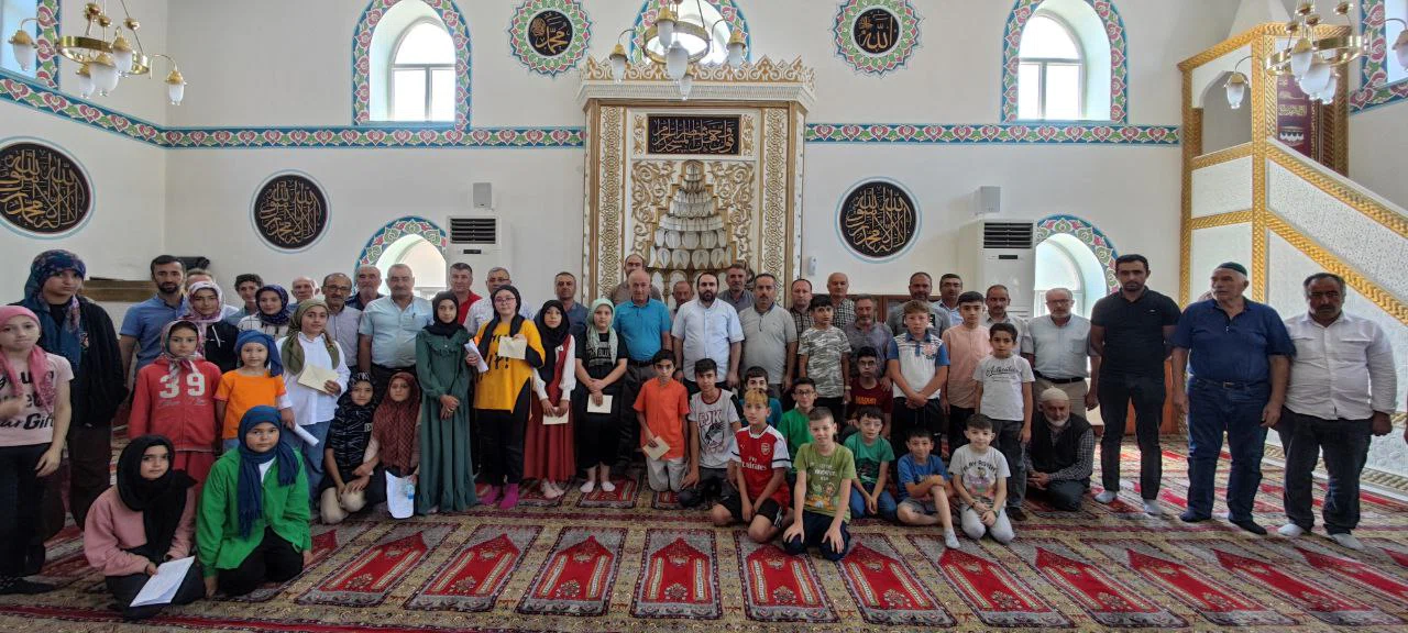 İlçe Müftülüğü Gençlik Koordinatörlüğünce Merkez Camisi'nde düzenlenen yarışmada öğrencilere kurs süresince edindikleri bilgiler hakkında sorular soruldu.