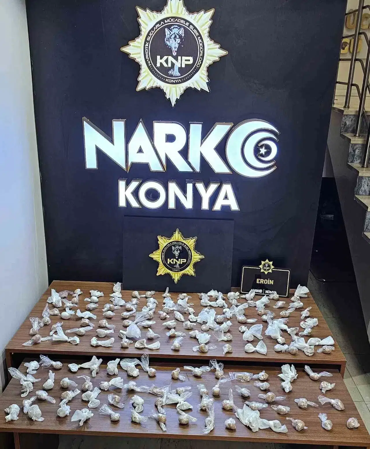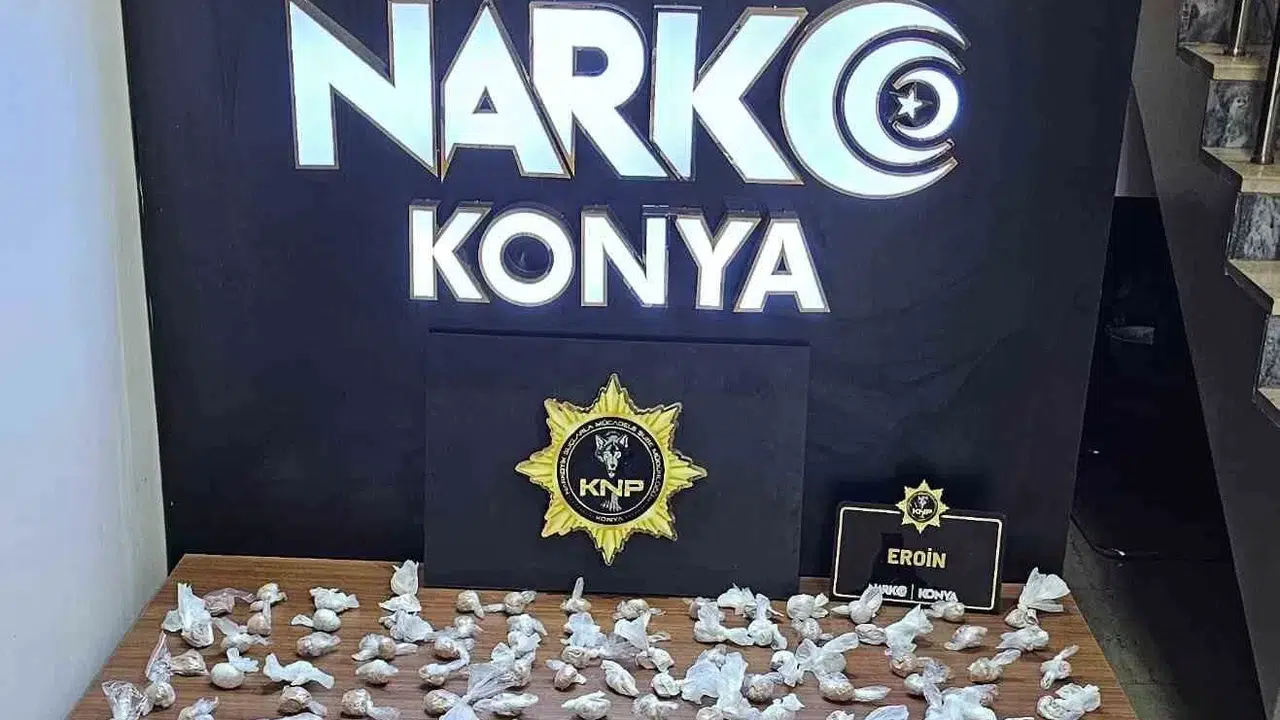 Konya’da polisin şüphe üzerine durdurduğu şahsın elindeki bez çantadan 1 kilo 570 gram eroin çıktı.