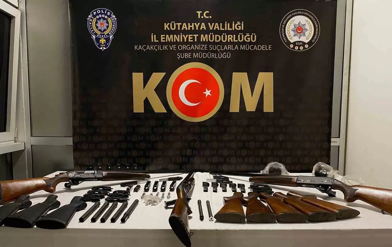 Kütahya’da Kaçakçılık ve Organize Suçlarla Mücadele Şube Müdürlüğü’nce gerçekleştirilen operasyonda, 5 adet av tüfeği, 2 adet havalı tüfek, 1 adet tabanca ve 17 adet şarjör ele geçirildi. Olayla ilgili gözaltına alınan 2 şüpheli serbest bırakıldı.