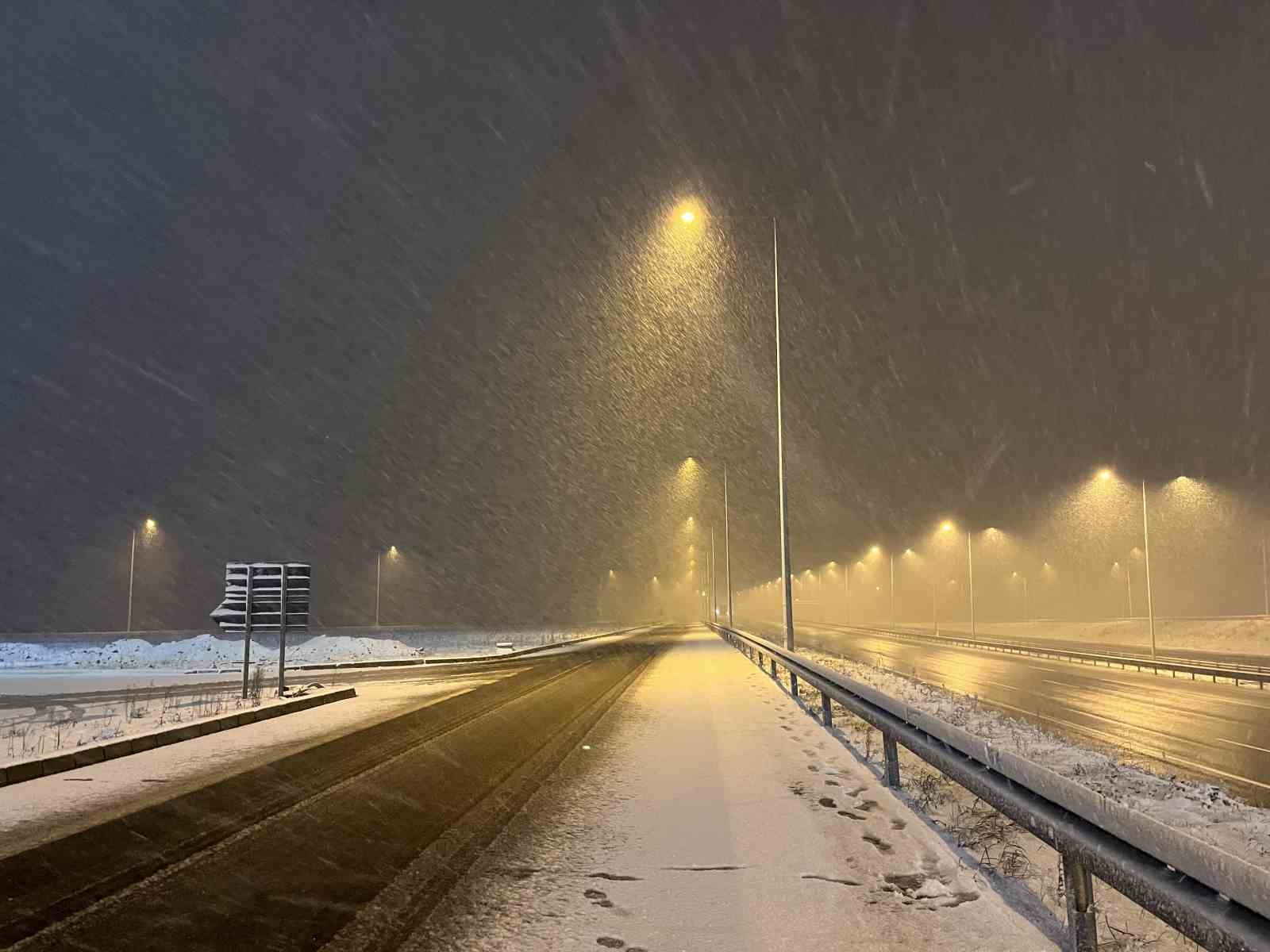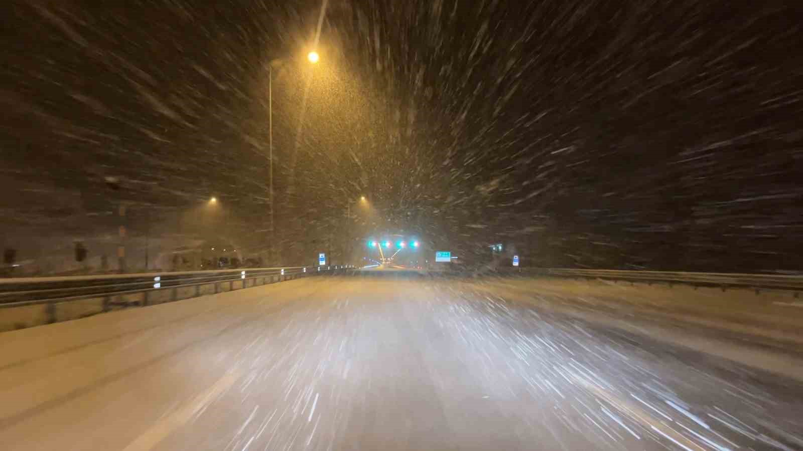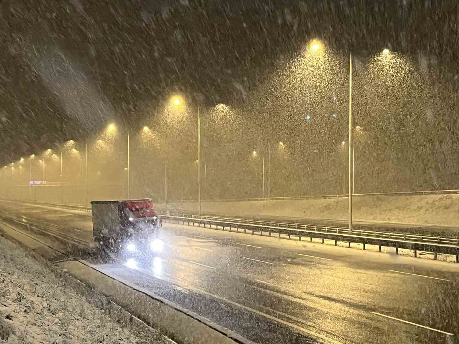 Kuzey Marmara Otoyolu’nun Kocaeli geçişinde kar yağışı etkili oluyor. Kar yağışı sebebiyle sürücüler dikkatle ilerliyor.