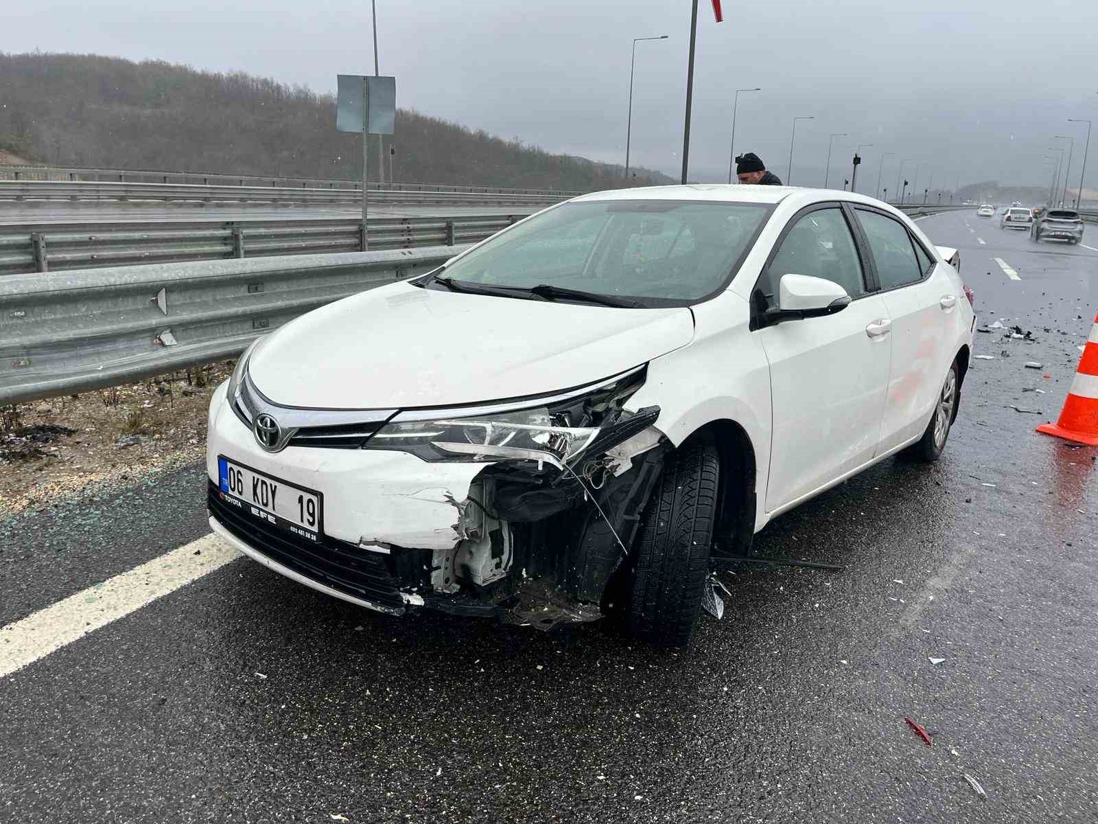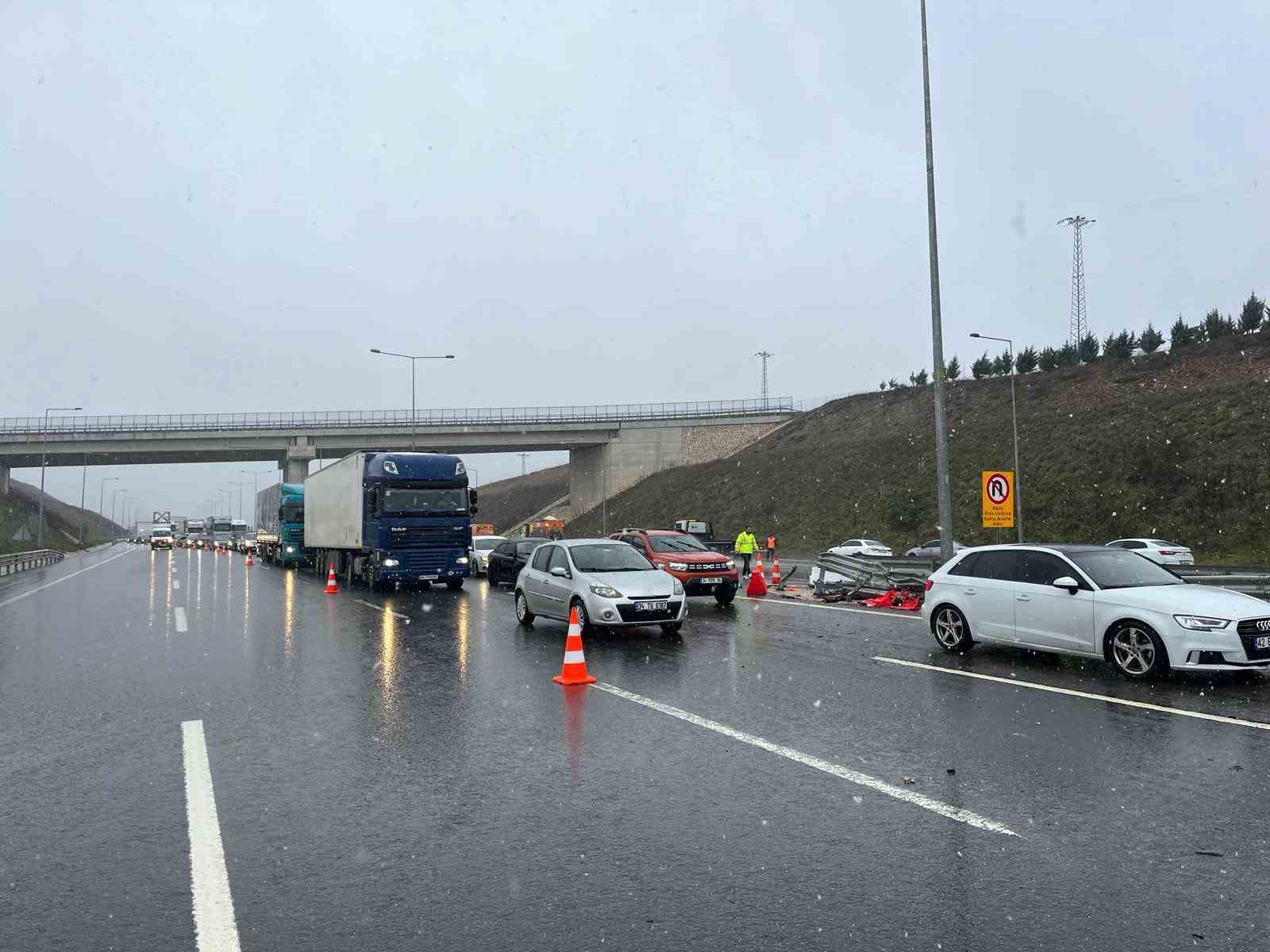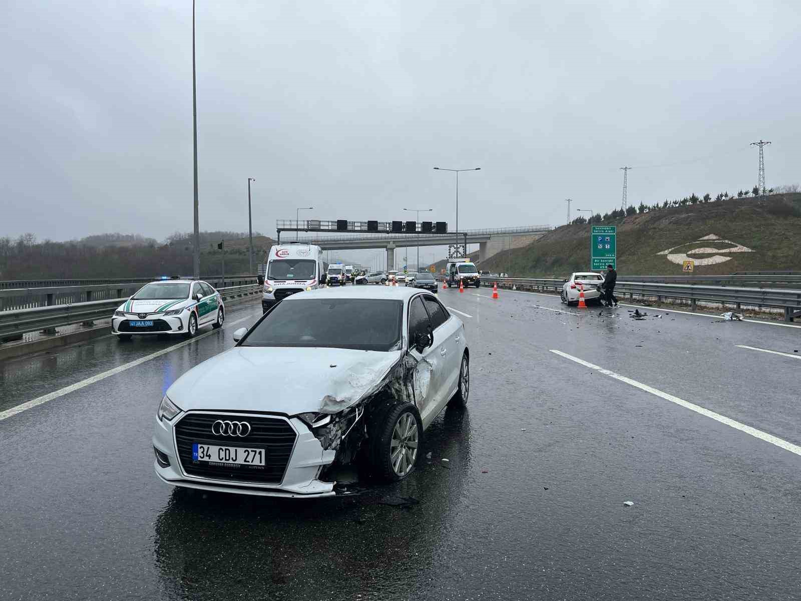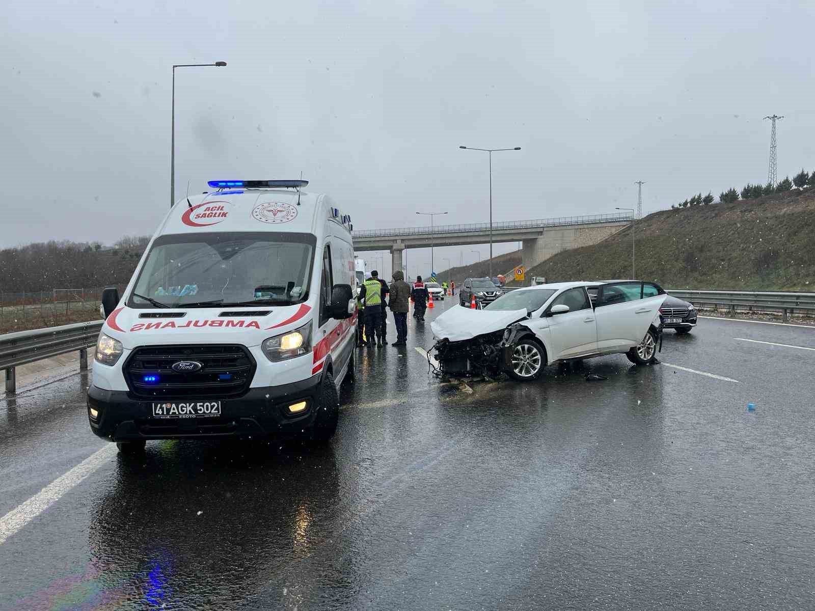 Karla karışık yağmurun etkili olduğu Kuzey Marmara Otoyolu Kocaeli geçişinde 3 aracın karıştığı zincirleme kazada 5 kişi yaralandı. Kaza sebebiyle otoyolun Ankara istikametinde uzun araç kuyrukları oluştu.