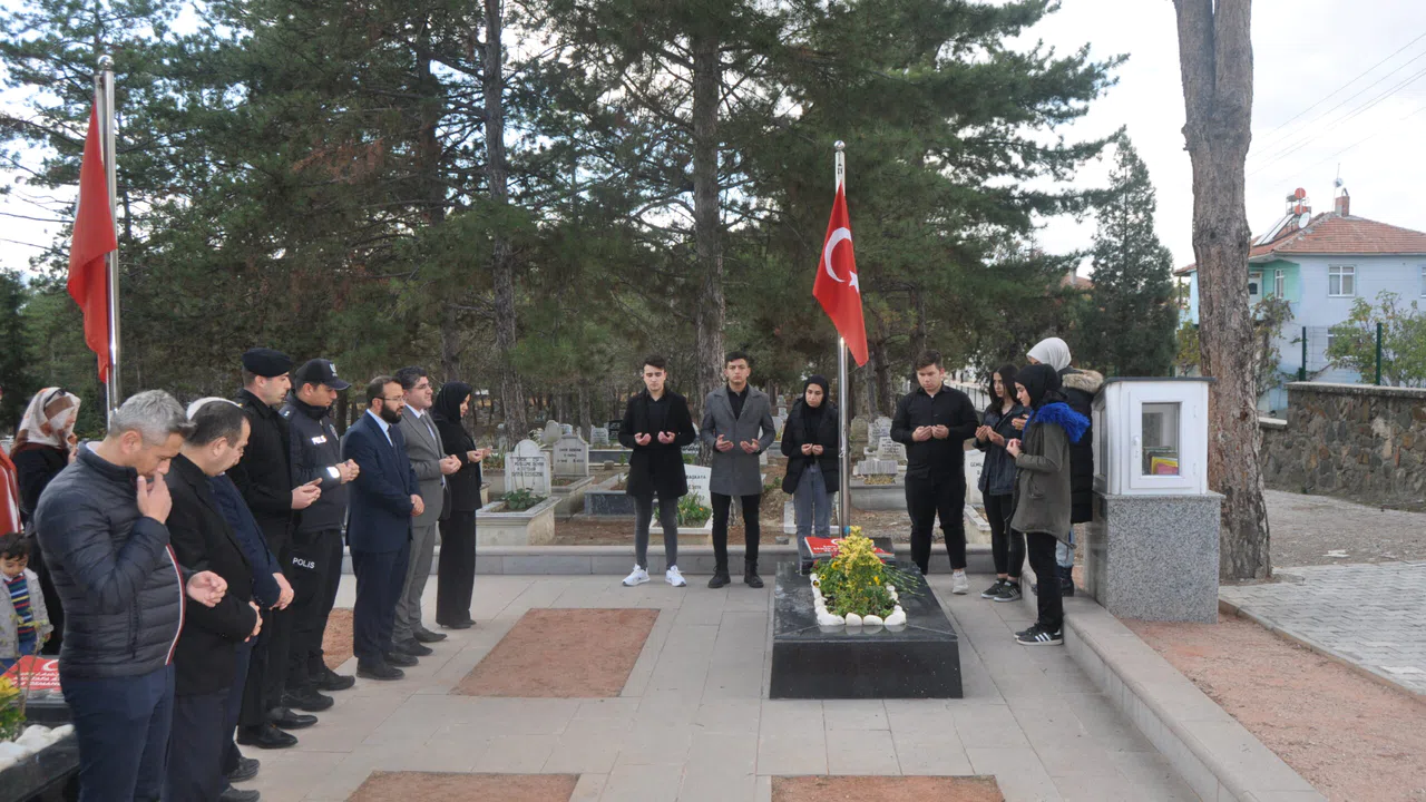 24 Kasım Öğretmenler Günü nedeniyle yaptığı ziyarette şehit öğretmenin kabrine karanfil bırakan Şimşek, şehit olan bütün öğretmenleri rahmetle ve minnetle andığını söyledi.