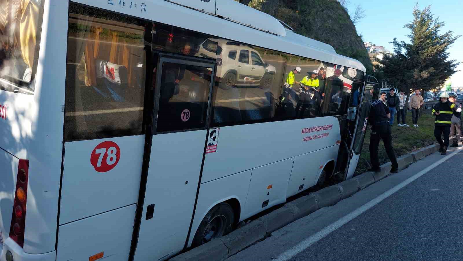 Samsun’da lastiği patlayan özel halk otobüsünün refüje çıktığı kazada 1 yolcu yaralandı.