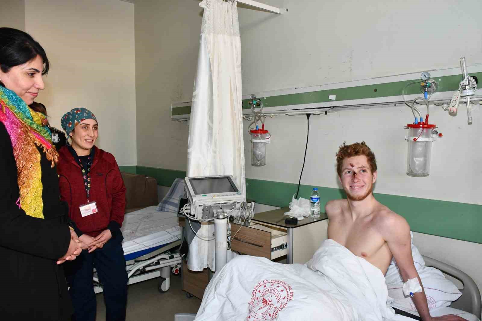 Doğubayazıt Belediye Başkanı Yıldız Acar, Ağrı Dağı’na tırmanış yaparken düşüp yaralanan Ukraynalı dağcıyı tedavi gördüğü hastanede ziyaret etti.