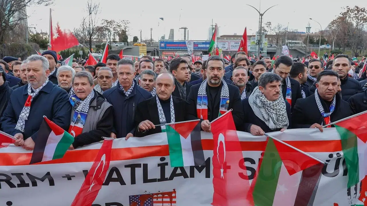 Ankara’da binlerce kişi İsrail’in Gazze’deki katliamı ve terör saldırısında şehit düşen askerler için destek yürüyüşüne katıldı. Ankara Filistin Dayanışma Platformu tarafından düzenlenen yürüyüşe Sincan Belediye Başkanı Murat Ercan ve AK Parti İl Başkanı Hakan Han Özcan da destek verdi. Yürüyüş Atatürk Kültür Merkezi Metro İstasyonu önünde başladı, Anadolu Meydanı’nda sona erdi.