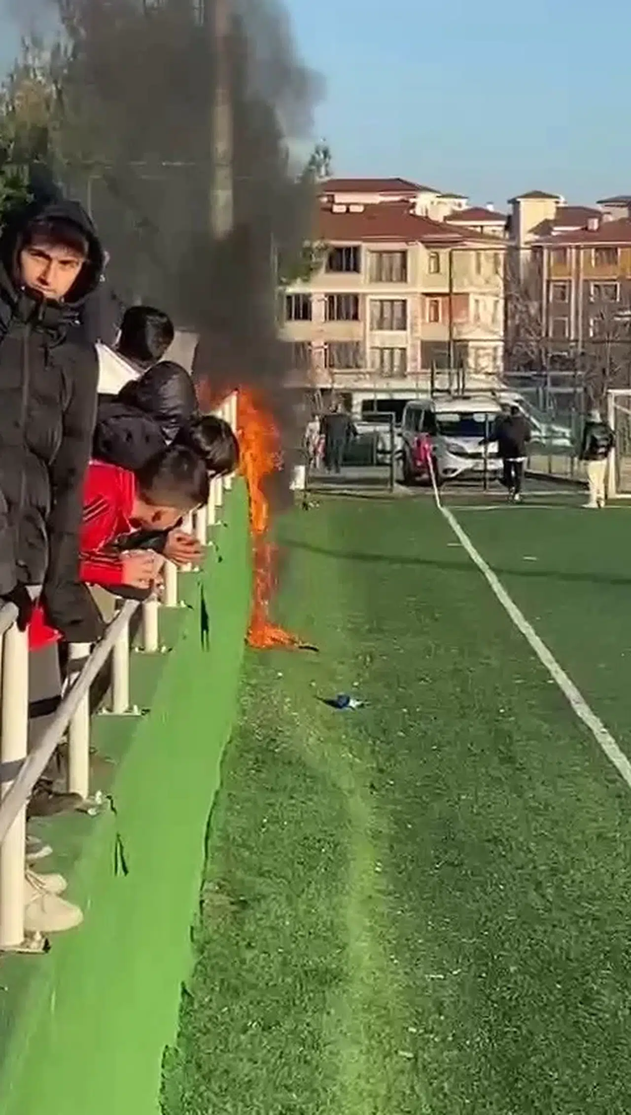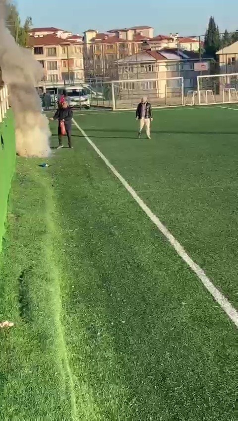 Olay, Emek Mahallesi’ndeki Safranbolu Stadyumu’nda meydana geldi. U-16 Ligi’nde Karabük İdmanyurdu ile Beşbinevlergücüspor arasında oynanan müsabaka sırasında iddiaya göre atılan yanıcı madde nedeniyle yangın çıktı. Saha görevlilerinin hızlı müdahalesiyle yangın büyümeden söndürülürken, o anlar cep telefonu kamerası ile kaydedildi.