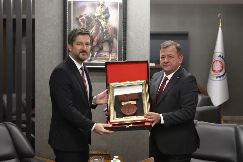 Matis, "Türkiye-Macaristan Ticari Fırsatları" toplantısı için geldiği kentte, Çorum Ticaret ve Sanayi Odası Başkanı Çetin Başaranhıncal'ı makamında ziyaret etti.