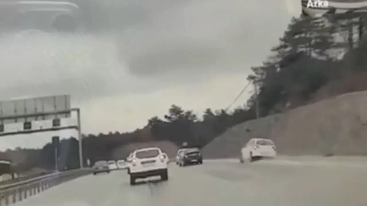 İstanbul Arnavutköy’de makas atarak seyir eden iki trafik magandası, yolda giden başka bir sürücünün kaza yapmasına neden oldu. Kaza anı araç kamerası tarafından böyle görüntülendi.