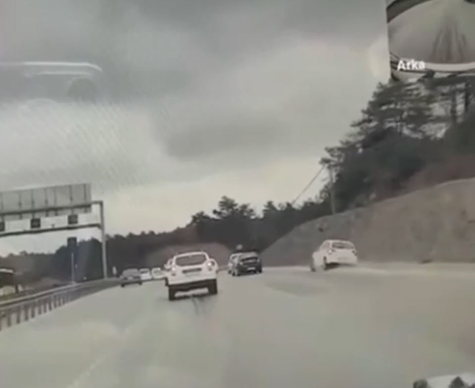 Arnavutköy Eski Edirne Asfaltı Caddesi üzerinde makas atarak ilerleyen 2 maganda, yolda seyir halinde olan başka bir aracın kaza yapmasına neden oldu. Araçların arasından hızla makas atarak giden 2 araç sürücüsü, yolda ilerleyen başka bir araç sürücüsünün refüje düşerek kazaya karışmasına neden oldu. Kaza anı araç kamerası tarafından kaydedilirken, şans eseri herhangi yaralanan olmadı.