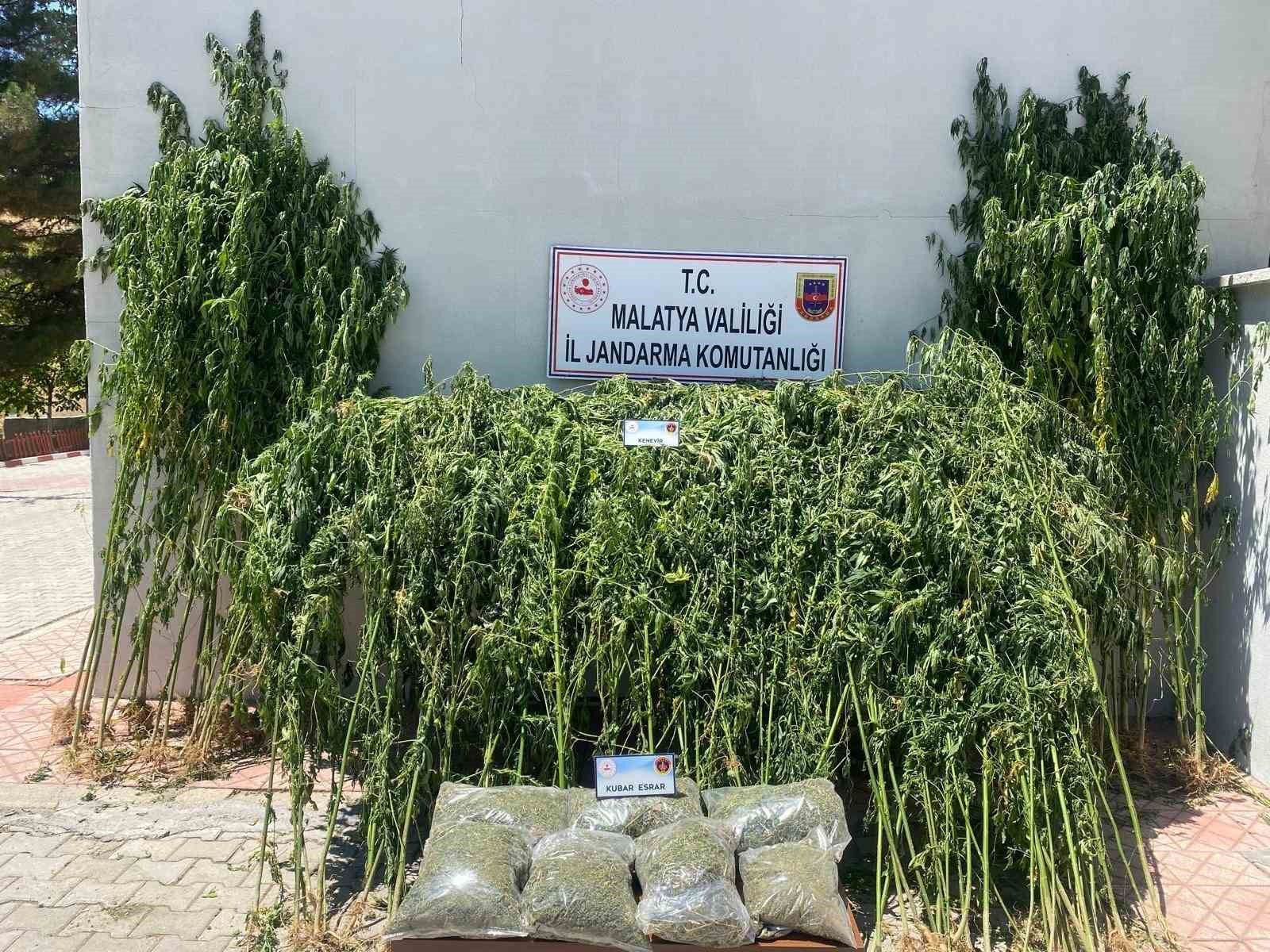 Malatya’nın Akçadağ ilçesinde jandarma tarafından düzenlenen operasyonda, 36 kilo 30 gram kubar esrar ile 52 kök kenevir bitkisi ele geçirildi.