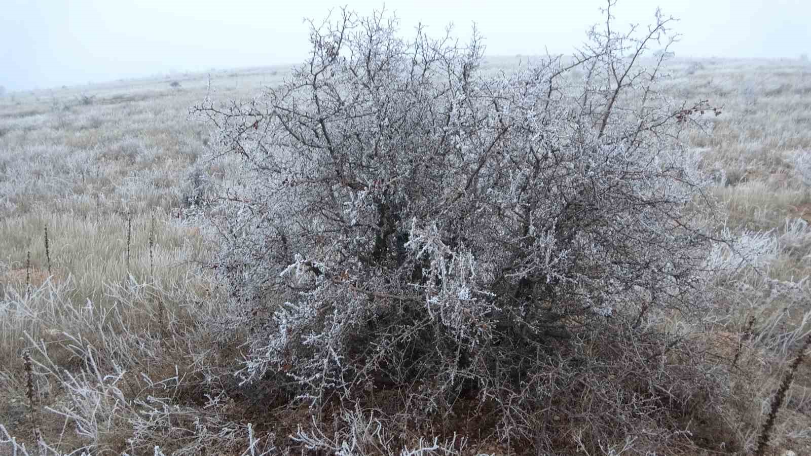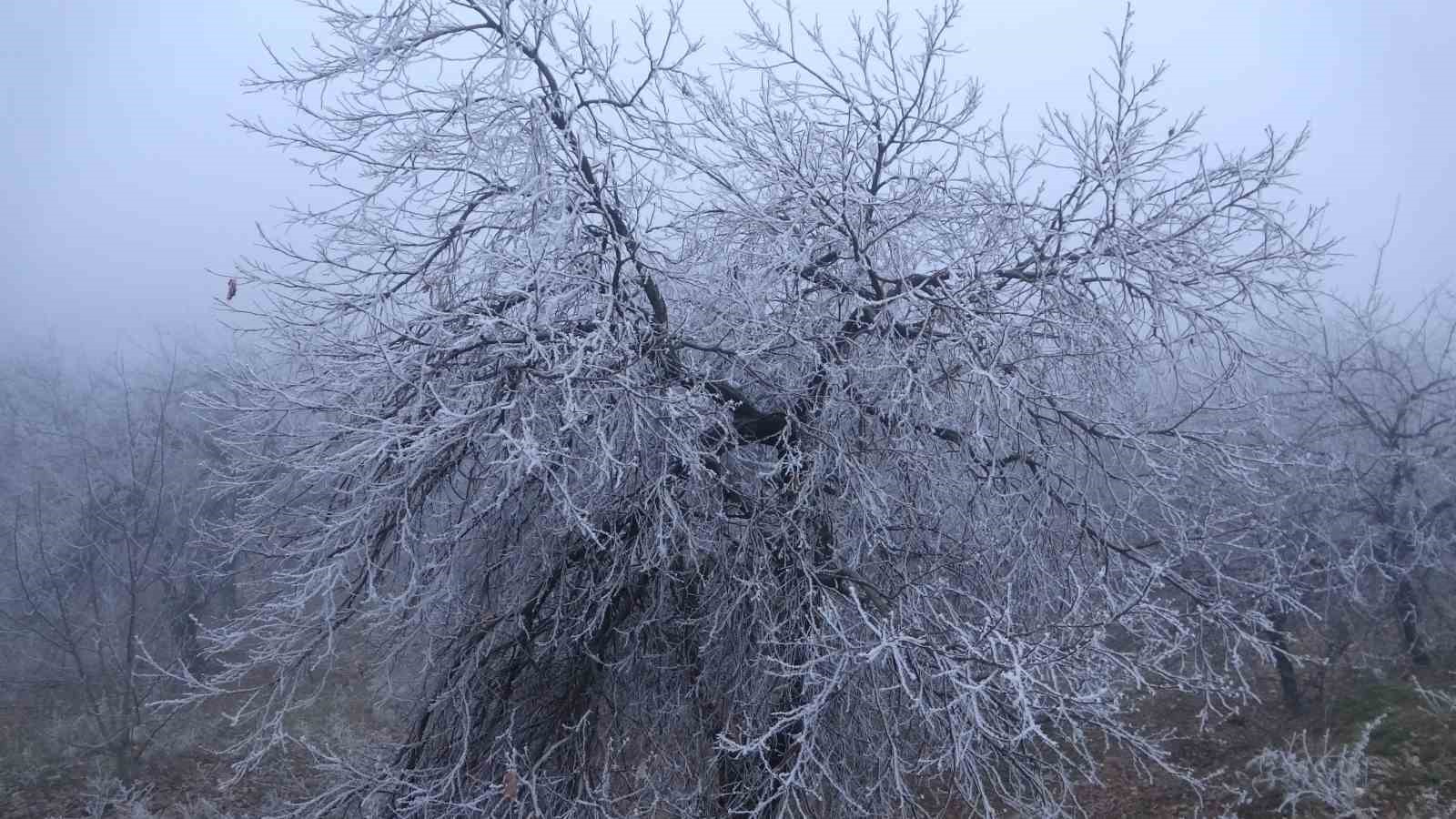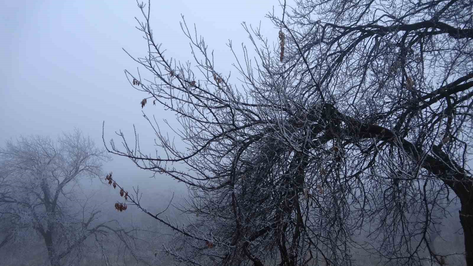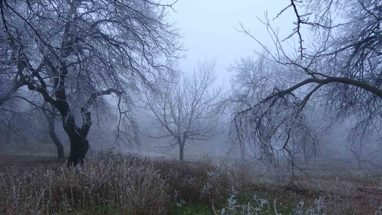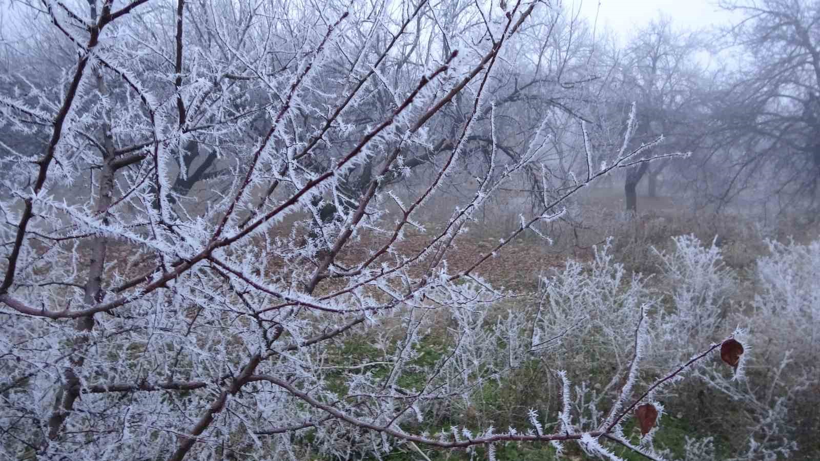 Malatya’da etkili olan soğuk hava hayatı olumsuz etkilerken, kırağı tutan ağaçlar ile bitkiler ise kartpostallık görüntüler oluşturdu.