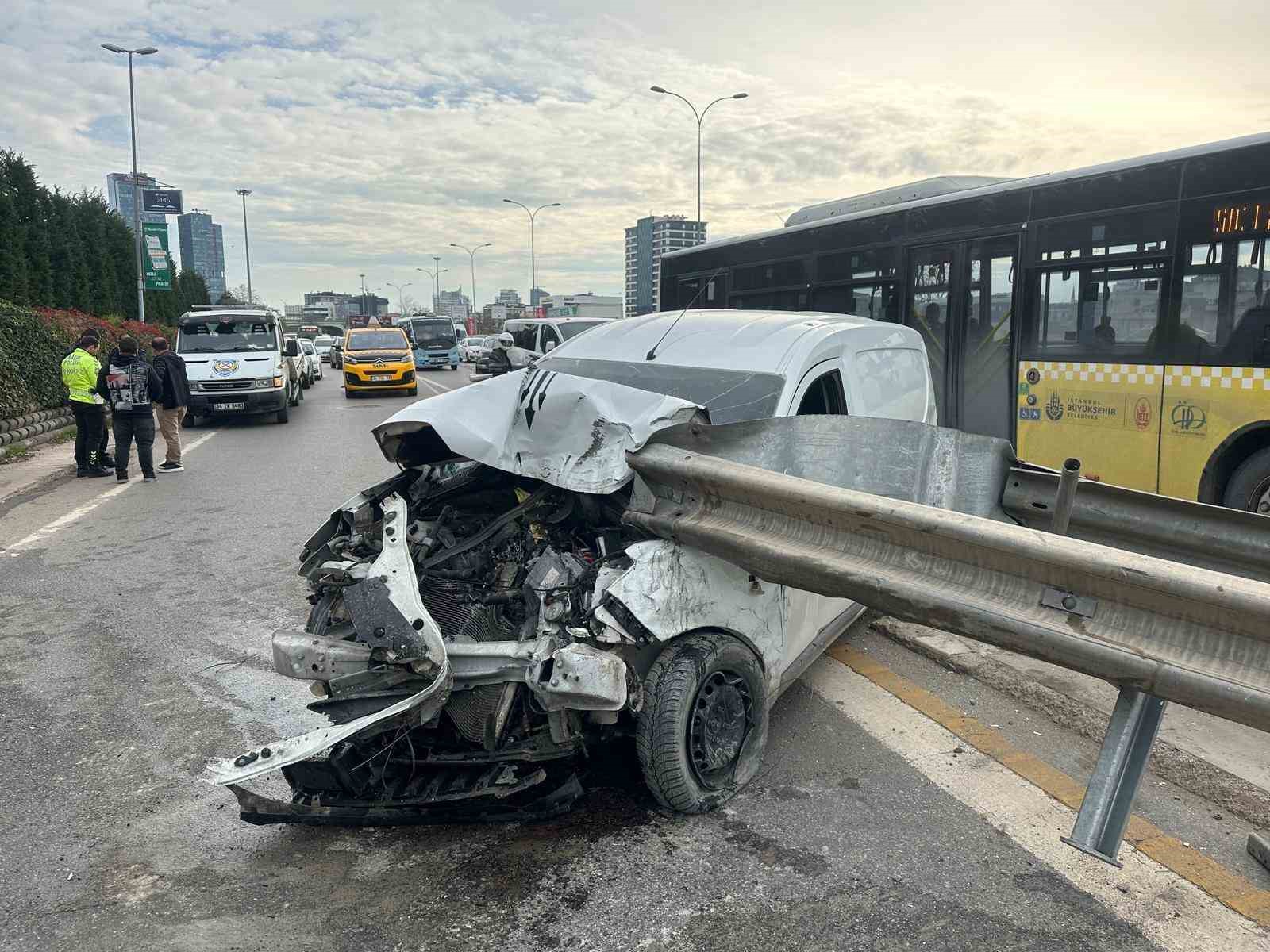 Kaza, saat 13.00 sıralarında Maltepe’de E 5 karayolu Kadıköy istikametinde meydana geldi. İddiaya göre, 34 DVH 346 plakalı Dacia marka hafif ticari araç sürücüsü, yol üzerine seyir halinde olduğu esnada direksiyon hakimiyetini kaybederek bariyere çarptı. Kazada araç sürücüsü ve beraberindeki bir kişi yaralandı. İhbar üzerine adrese sevk edilen polis ekipleri yol üzerinde güvenlik önlem alırken sağlık ekipleri ise yaralıları hastaneye kaldırdı. Kaza sonrası yol üzerinde uzun araç kuyrukları oluştu. Ekipler, kazaya ilişkin çalışma başlattı