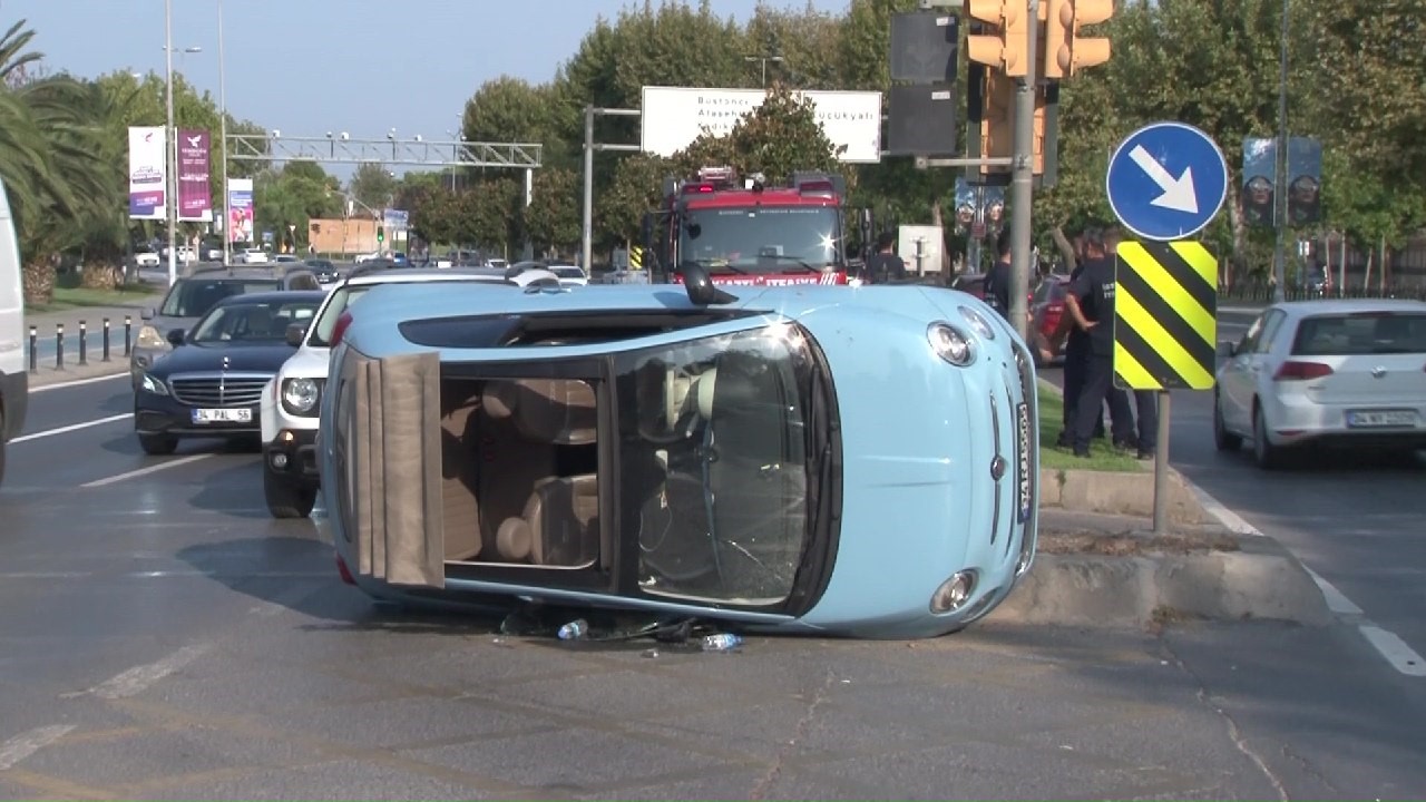 Maltepe’de seyir halindeki bir otomobil sürücüsünün kontrolünden çıkarak yan yattı. Kazada ölen veya yaralanan olmadı.