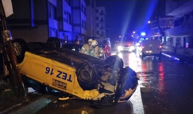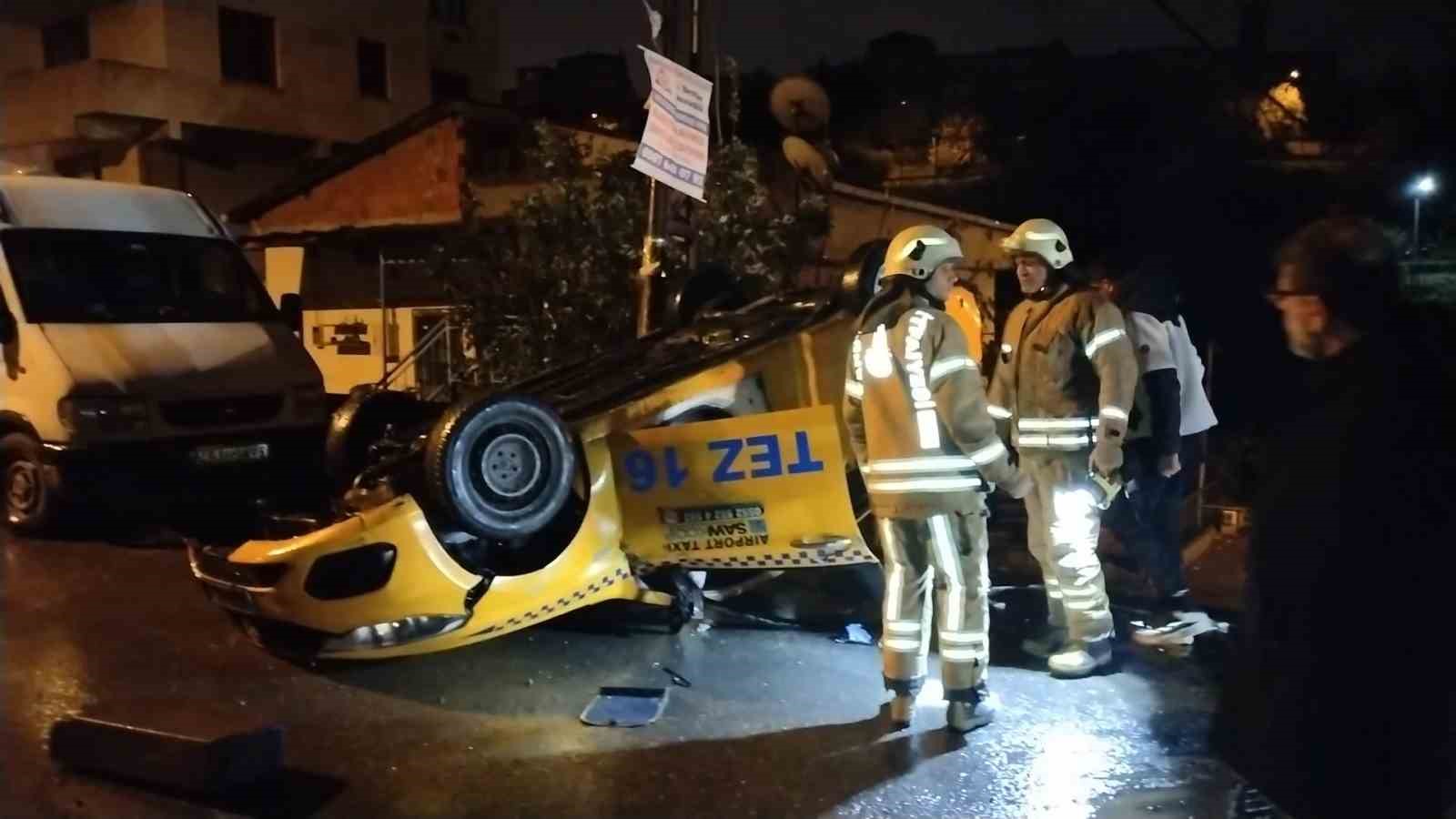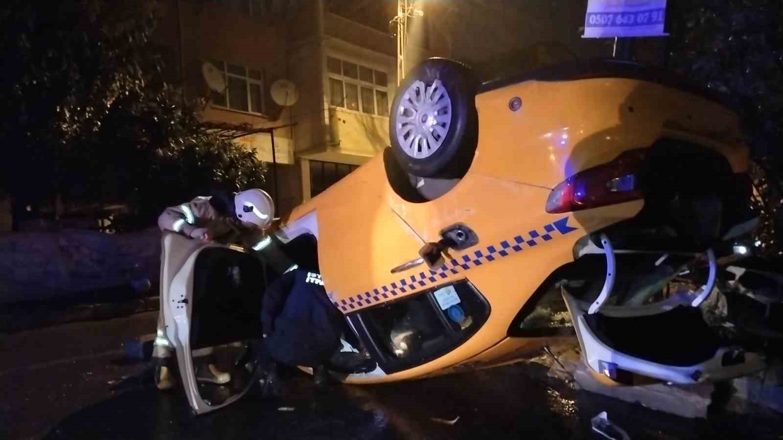 Maltepe’de aracının direksiyon hakimiyetini kaybeden ticari taksi sürücüsü önce elektrik panosuna çarptı, ardından da takla atarak durabildi. Kazada taksi şoförü hafif şekilde yaralandı.
