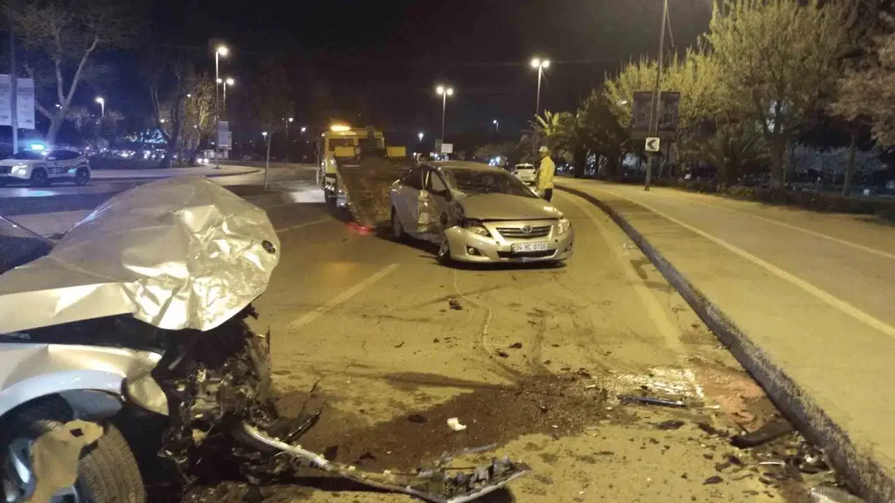 Maltepe’de Karşı Yönlerden Gelen 2 Otomobil Çarpıştı