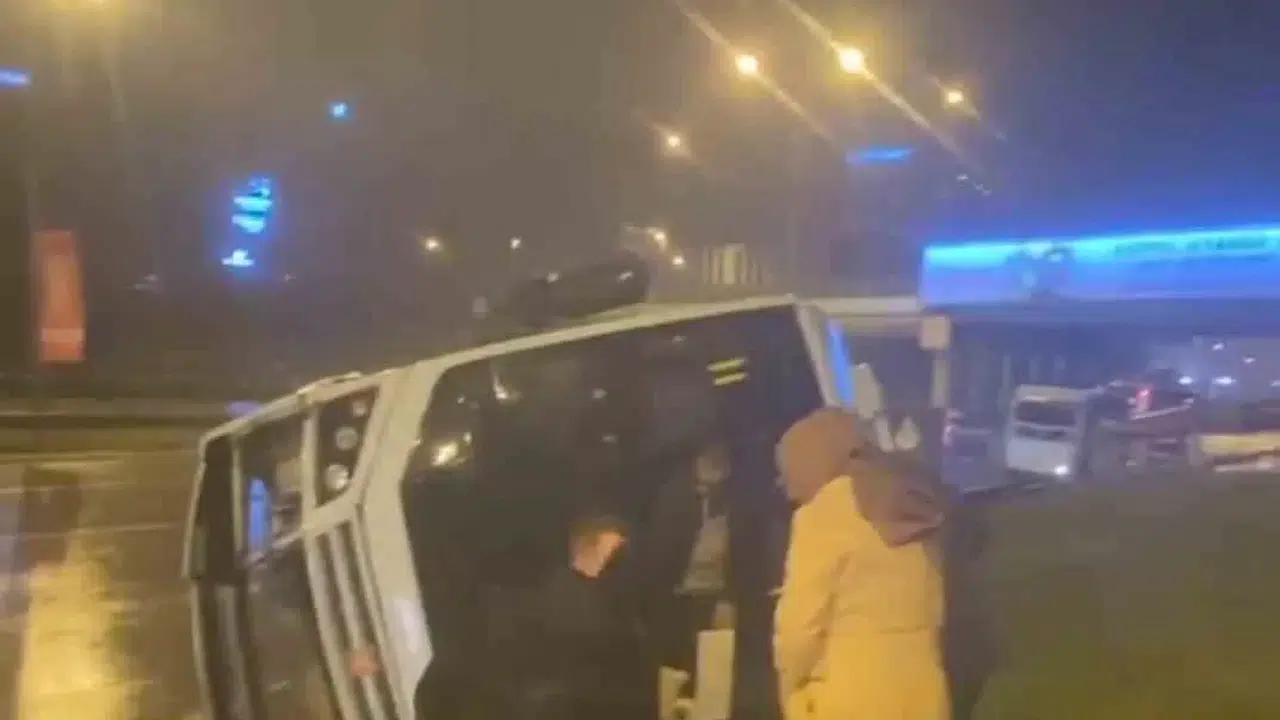 Maltepe’de D-100 karayolu üzerinde şoförünün direksiyon hakimiyetini kaybettiği minibüs devrilerek yan yattı. Kaza sonrası yaşananlar cep telefonu kamerasına yansıdı.