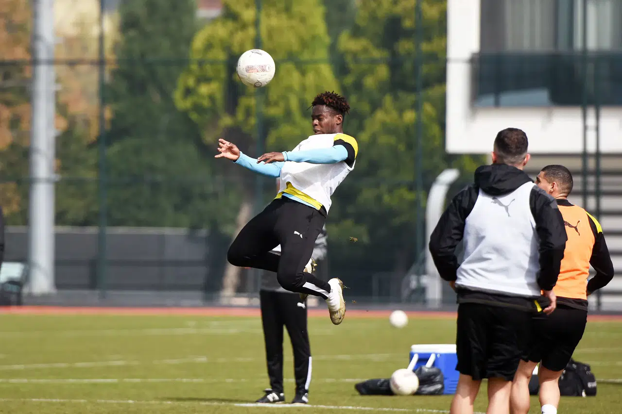 Fikri Bayrıl Tesisleri’nde Teknik Direktör Mustafa Dalcı yönetiminde gerçekleşen antrenman ısınma hareketleriyle başladı. Dar alan oyunuyla devam eden antrenman duran top çalışmasıyla sona erdi.