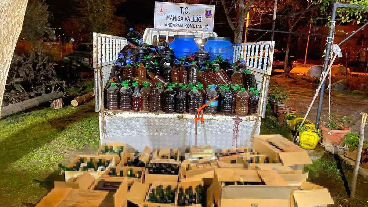 Manisa’nın Alaşehir ilçesinde Manisa İl Jandarma Komutanlığı Alaşehir İlçe Jandarma Komutanlığı ekipleri tarafından kaçak alkol bulundurulduğu istihbaratı üzerine bir evde arama yapıldı. Yapılan aramalarda bidonlar içerisinde toplam 2 bin 44 litre kaçak alkol ve 171 boş şişe ile 1 adet şişe kapatma makinesi ele geçirildi. Yapılan operasyonda F.E. olmak üzere bir kişi gözaltına alındı.