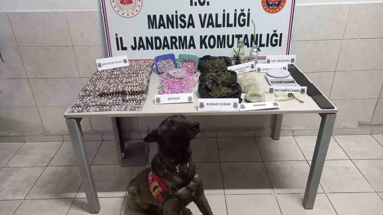 Manisa İl Jandarma Komutanlığına bağlı İstihbarat ve KOM Şube Müdürlüğü tarafından Akhisar ilçesinde uyuşturucu operasyonu düzenlendi. C.K. ve N.G. isimli şahısların evlerinde yapılan aramalarda 2 bin 557 gram kubar esrar, 256 gram bonzai, 22 gram metamfetamin, 4 bin 356 adet ectacy hap, 2 bin 756 adet sentetik ecza, 1 adet hassas terazi, 7 adet uyuşturucu kullanma aparatı, 4 adet cep telefonu ele geçirildi.
