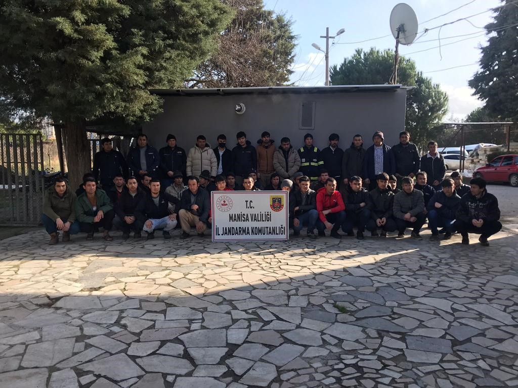 Manisa İl Jandarma Komutanlığı KOM Şube Müdürlüğü ekiplerince, bugün Yunusemre ilçesinde faaliyet gösteren bir işletmeye ait 2 ayrı iş yerinde, savcılıktan alınan talimat üzerine yapılan aramada 34 Afganistan uyruklu yabancı şahıs yakalandı.