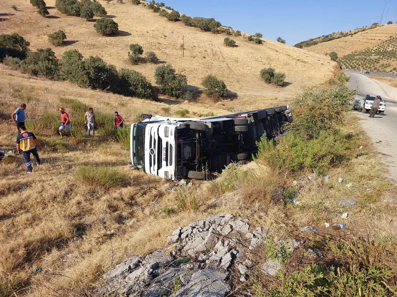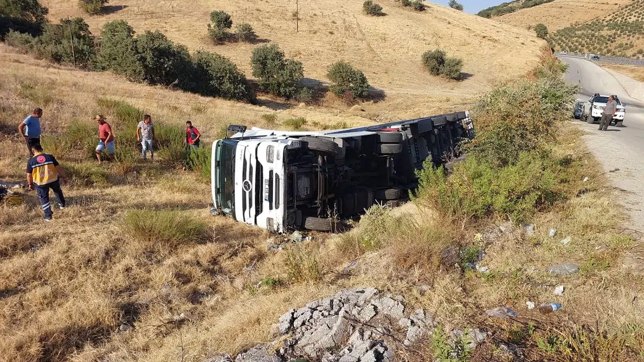 Manisa’da Tır Yan Yattı: 1 Yaralı