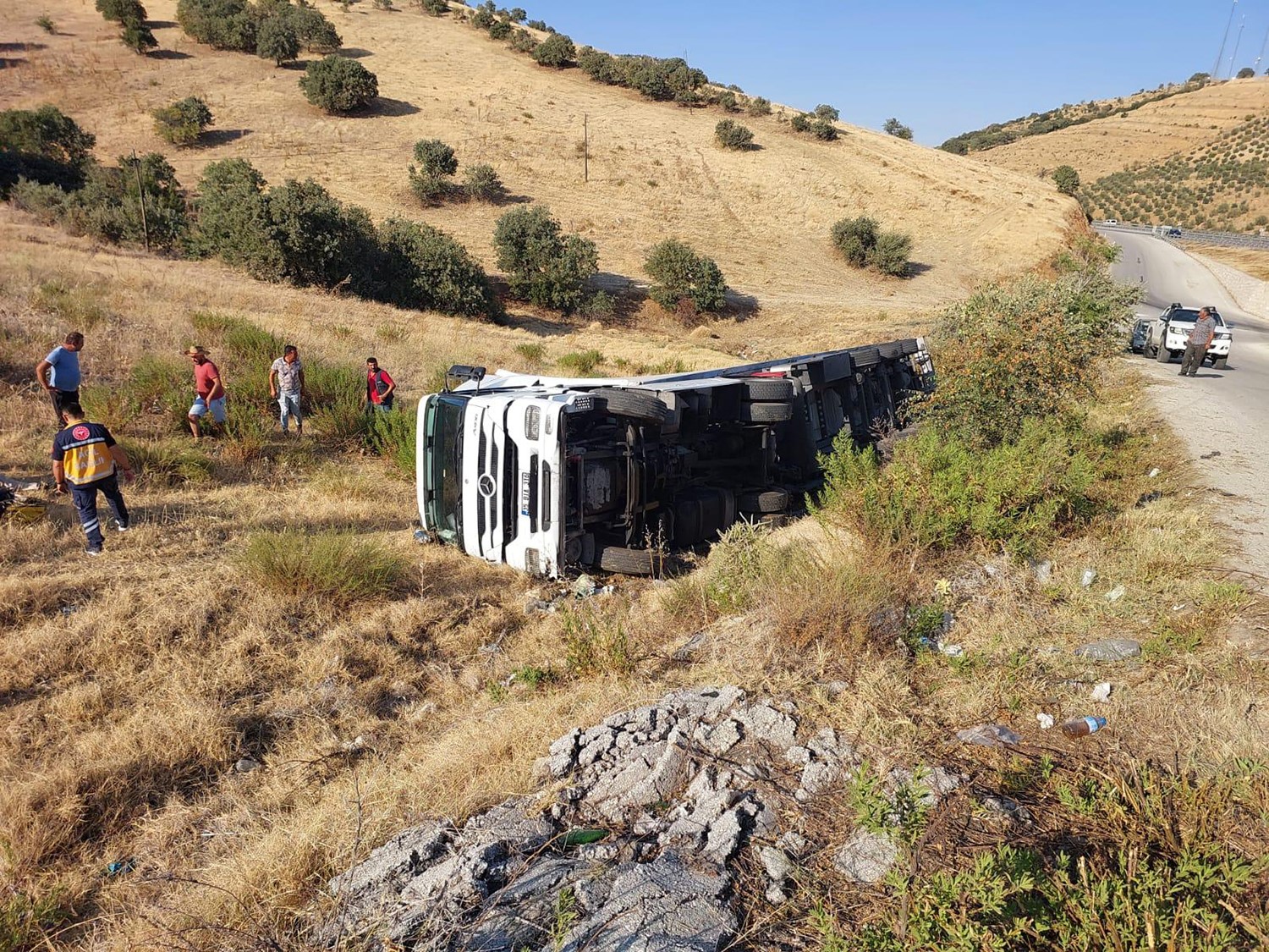 Kaza, saat 17.30 sıralarında İzmir-Ankara D300 Karayolu Kemaliye Kavşağı yakınlarında meydana geldi. Edinilen bilgiye göre, Hüseyin Coşkun (59) idaresindeki 35 BIA 316 plakalı tır, kavşaktan çıkarak yola bağlanmak istediği sırada sürücünün direksiyon hakimiyetini kaybetmesi sonucu yolun kenarında yan yattı. Kazayı gören vatandaşların durumu 112 Acil Çağrı Merkezi’ne bildirmesi üzerine olay yerine jandarma ve sağlık ekipleri sevk edildi. İlk müdahalesi olay yerinde yapılan yaralı sürücü, ambulansla Kula Devlet Hastanesi’ne kaldırıldı. Yaralı sürücünün durumunun iyi olduğu öğrenilirken, kazayla ilgili soruşturma başlatıldı.