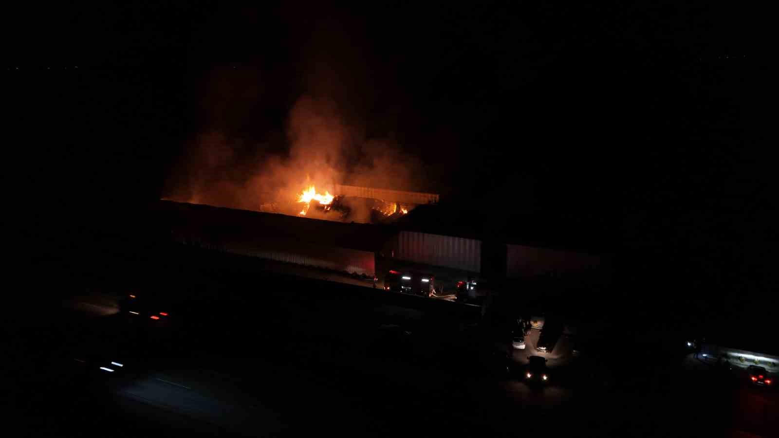 Alevlerin bölgeyi aydınlattığı yangına itfaiye ekiplerinin müdahalesi devam ediyor.