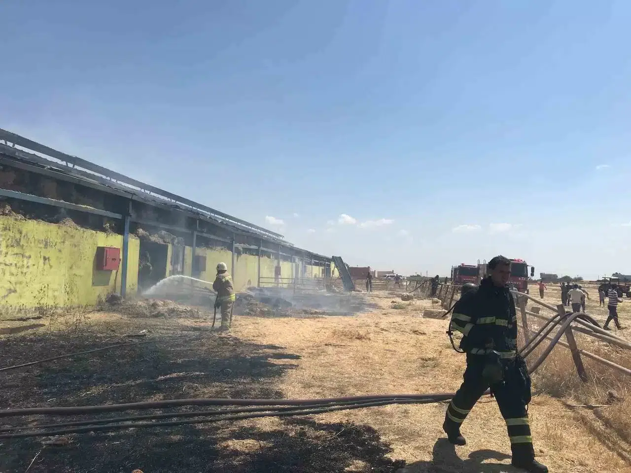 Mardin’in Artuklu ilçesinde çıkan çiftlik yangınında, itfaiye ekiplerinin alevlere müdahalesi sürüyor.