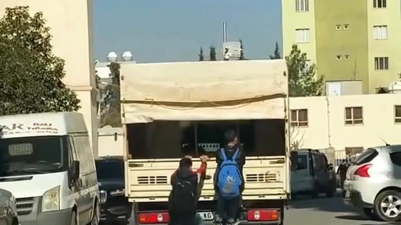 Edinilen bilgilere göre, dün Koçhisar Mahallesi’nde iki çocuk, kamyonun arkasına tutunarak yolculuk yaptı.