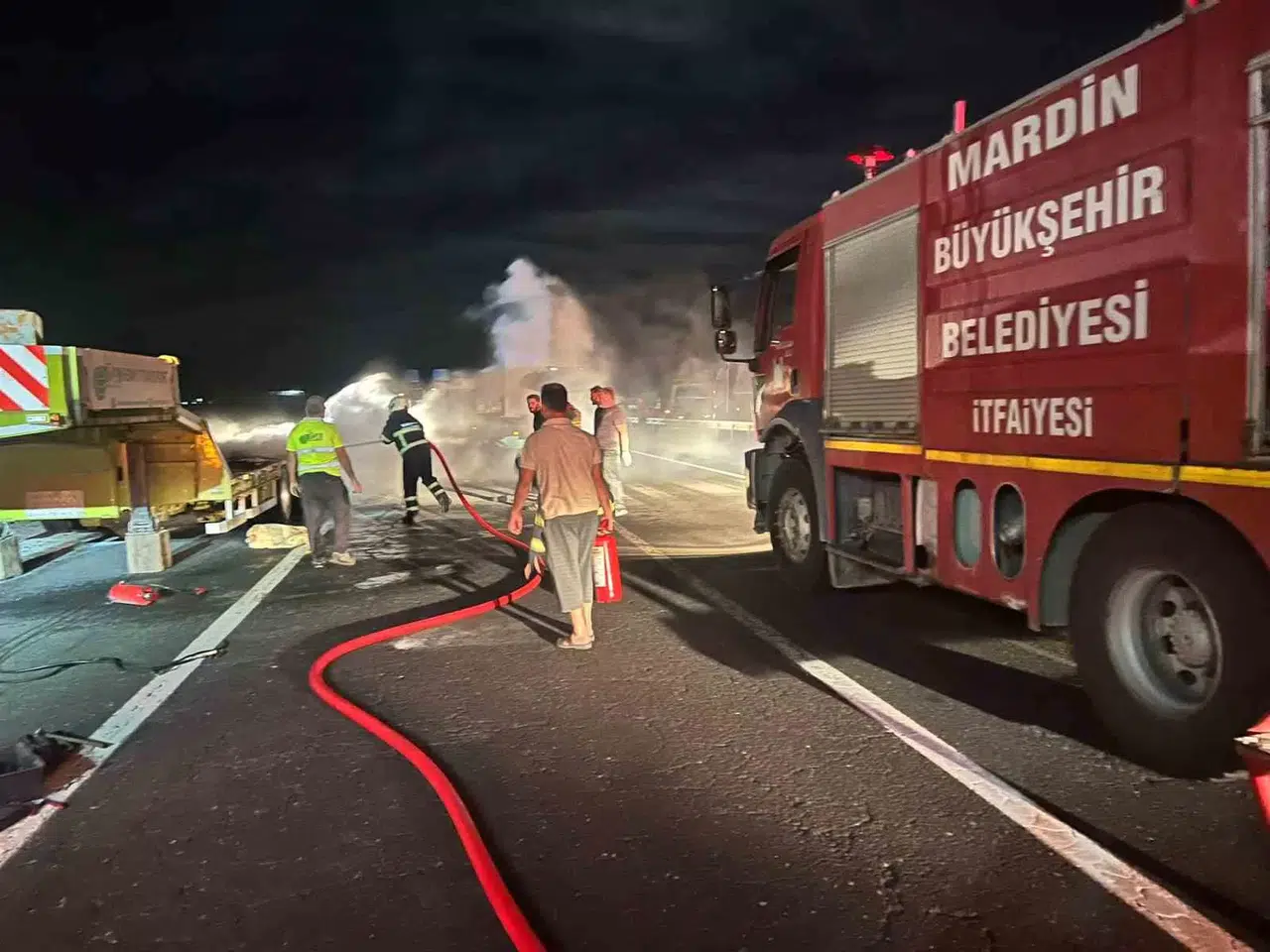 Edinilen bilgilere göre, gece saatlerinde Nusaybin ilçesi Girmeli Mahallesi istikametinde plakası henüz öğrenilemeyen tır, seyir halindeyken alev aldı. Yangını fark eden sürücü, aracı durdurup durumu 112 Acil Çağrı Merkezine bildirdi. İhbar üzerine olay yerine itfaiye, jandarma ve sağlık ekibi sevk edildi. Yangın, itfaiye ekiplerince söndürülürken tır, kullanılmaz hale geldi.