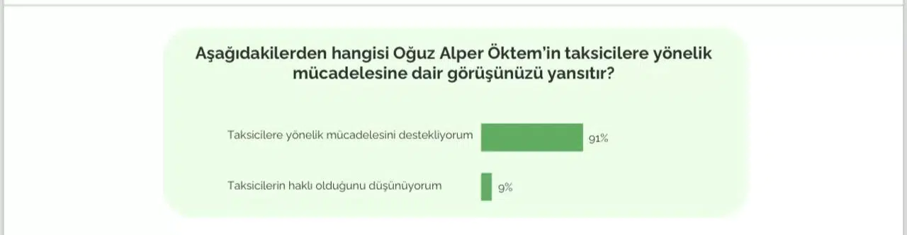Araştırma sonuçlarını değerlendiren Oğuz Alper Öktem ’Paylaşımlı Yolculuk Yönetmeliği’nin, İstanbul’un sokaklarında hızla büyüyen taksi hizmetlerine yönelik memnuniyetsizliği çözmek adına kritik önem taşıdığını belirterek, "Bu yönetmelik, taksi taşımacılığında yaşanan vergi kaçağı, emek sömürüsü ve güvenlik sorunları gibi temel problemleri odağına alarak, dijital kayıt ve denetim mekanizmalarıyla bu sorunların üstesinden gelmeyi amaçlıyor" dedi.