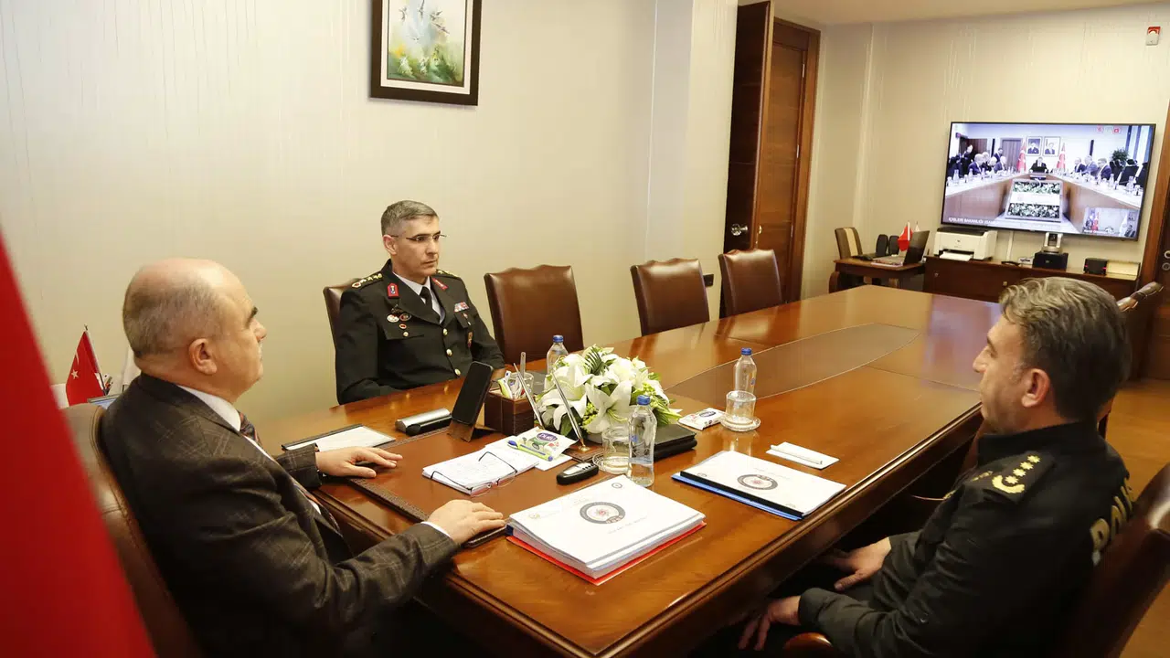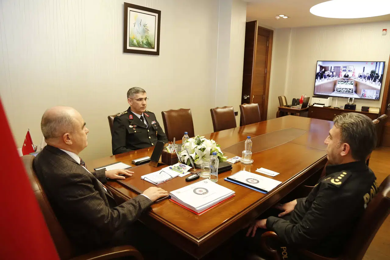 İçişleri Bakanı Ali Yerlikaya’nın başkanlığında yapılan toplantıya Vali Zülkif Dağlı, Emniyet Müdürü Arif Pehlivan ve Jandarma Komutanı Naim Çetinkaya da katıldı.