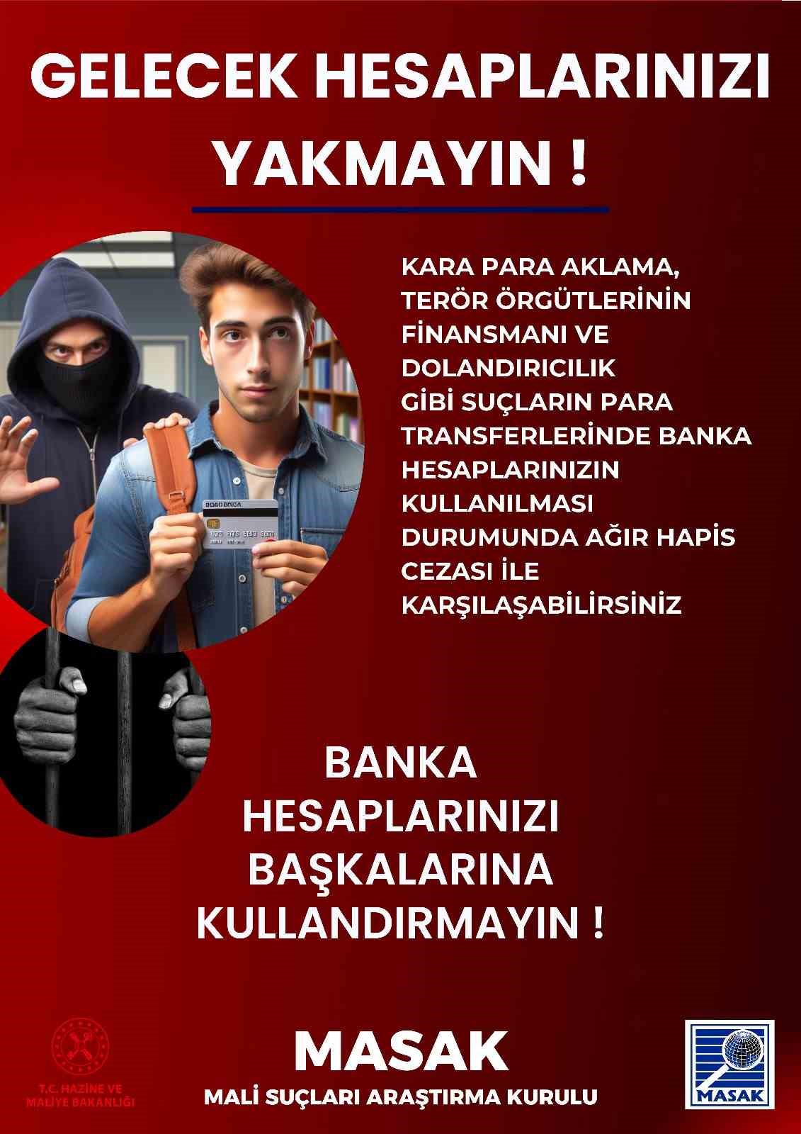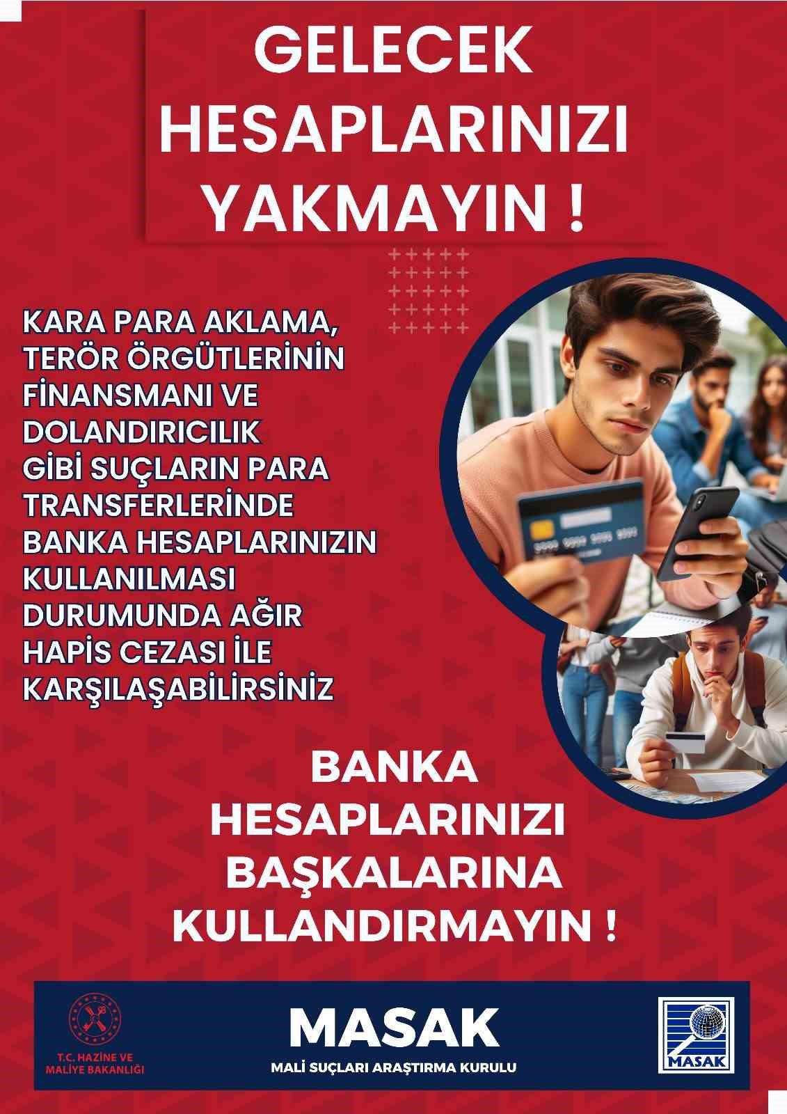 YÖK’ten yapılan açıklamaya göre, son dönemde özellikle üniversite öğrencilerinin banka hesaplarını başkalarına kullandırmak suretiyle gelir elde ettiği, kullandırılan bu hesapların suç gelirlerinin aklanması, terörizmin finansmanı, dolandırıcılık gibi ağır hapis cezaları gerektirecek suçlara sebebiyet verebileceği yönünde şikayetler gelmesi üzerine MASAK ile iş birliği yapıldı. MASAK’ın hazırladığı ve YÖK tarafından üniversitelere gönderilen afişlerde öğrencilere, "Gelecek hesaplarınızı yakmayın. Kara para aklama, terör örgütlerinin finansmanı ve dolandırıcılık gibi suçların para transferlerinde banka hesaplarınızın kullanılması durumunda ağır hapis cezasıyla karşılaşabilirsiniz. Banka hesaplarınızı başkalarına kullandırmayın" uyarısı yapıldı.