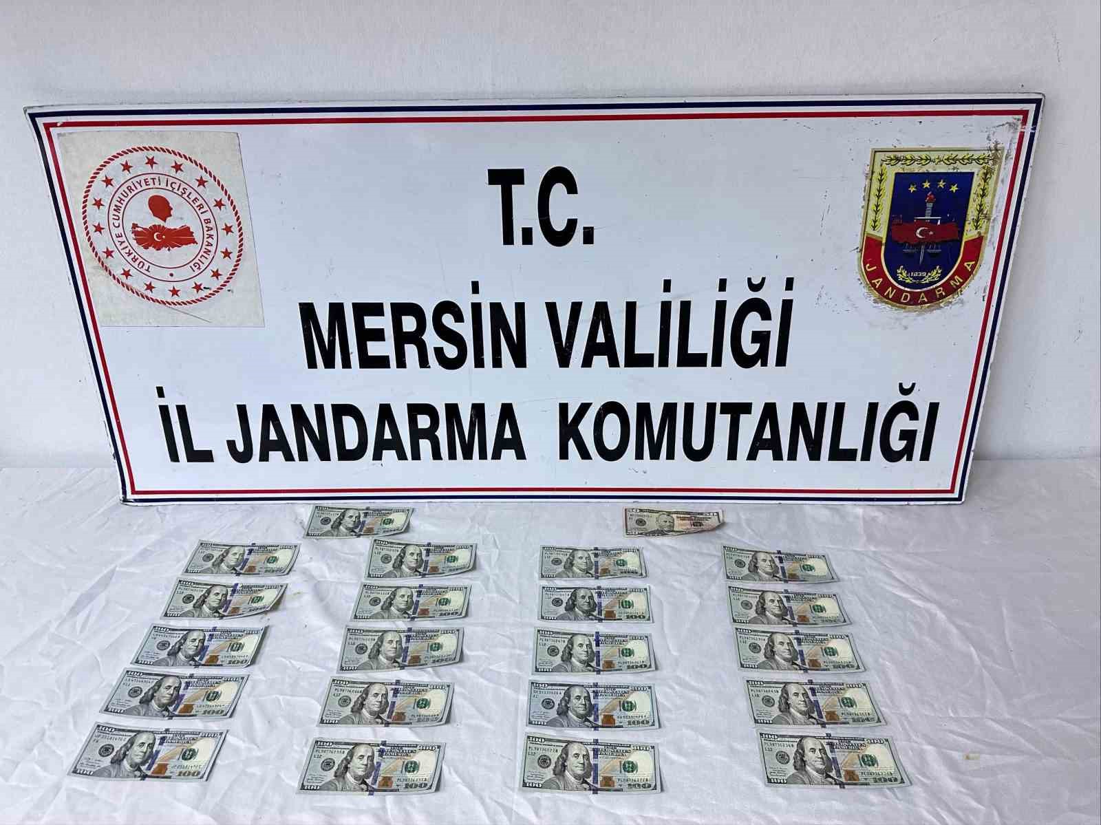 Alınan bilgiye göre, İl Jandarma Komutanlığı ekipleri tarafından yapılan çalışmada Tarsus ilçesinde bir şüphelinin piyasaya sahte para süreceği bilgisi alındı. Bunun üzerine harekete geçen jandarma ekipleri, şüphelinin kimliğini tespit edip operasyon yaptı. Operasyonla yakalanan şüphelinin üzerinde yapılan aramada 21 adet 100, 1 adet de 50’lik sahte dolar ele geçirildi.