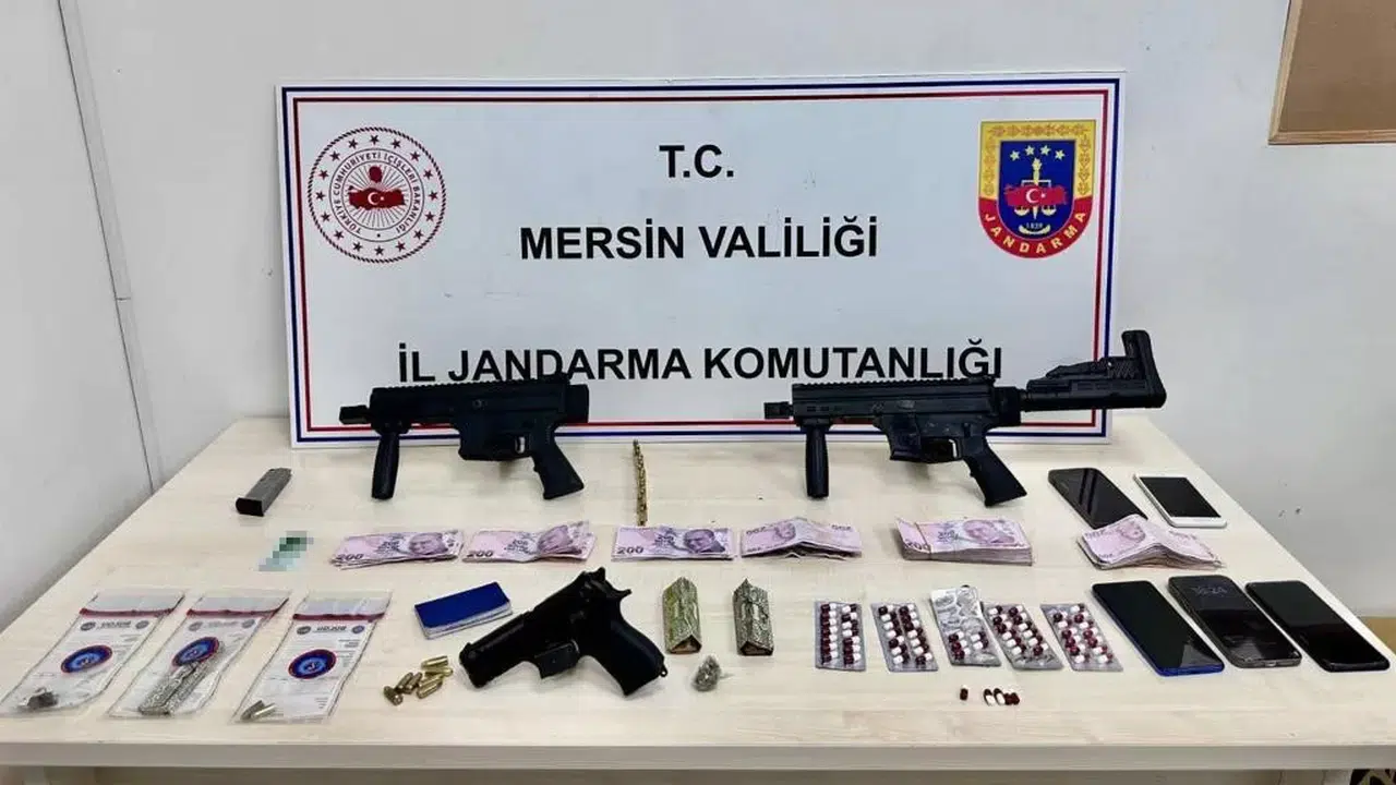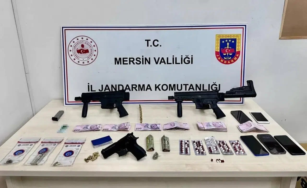 Alınan bilgiye göre, İl Jandarma Komutanlığına bağlı ekipler, silah kaçakçılığı yapan şahıslara yönelik çalışma gerçekleştirdi. Ekiplerin çalışmasında Erdemli ilçesinde belirlenen 3 şüphelinin elinde bulundurduğu silahları satmak için müşteri arayışında olduğu tespit edildi. Şüphelileri takibe alan jandarma ekipleri operasyonla 3 şahsı yakalayarak gözaltına aldı. Şüphelilerin adreslerinde yapılan aramada bulunan 2 adet makinalı tabanca, 1 adet tabanca, 4 adet şarjör, 41 adet tabanca fişeği, 63 adet uyuşturucu hap, 15 gram esrar, 5 adet cep telefonu ile suçtan elde edilen 25.000 TL’ye el koydu.