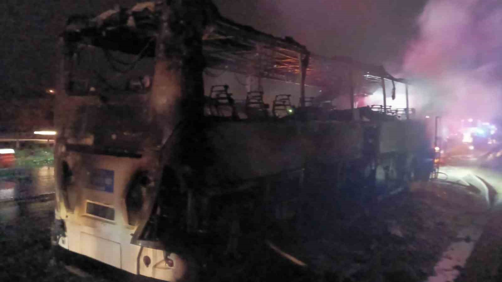 Mersin’in Tarsus ilçesinde otoyolda servis otobüsü alev alev yandı.
